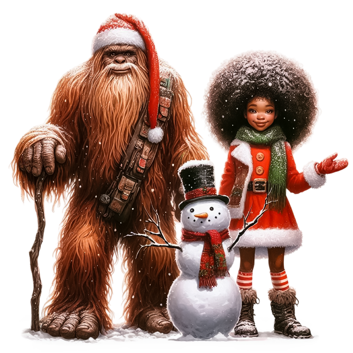 Bigfoot / Sasquatch Santa w Girl, Plush Christmas Tree Skirt – 3 Sizes