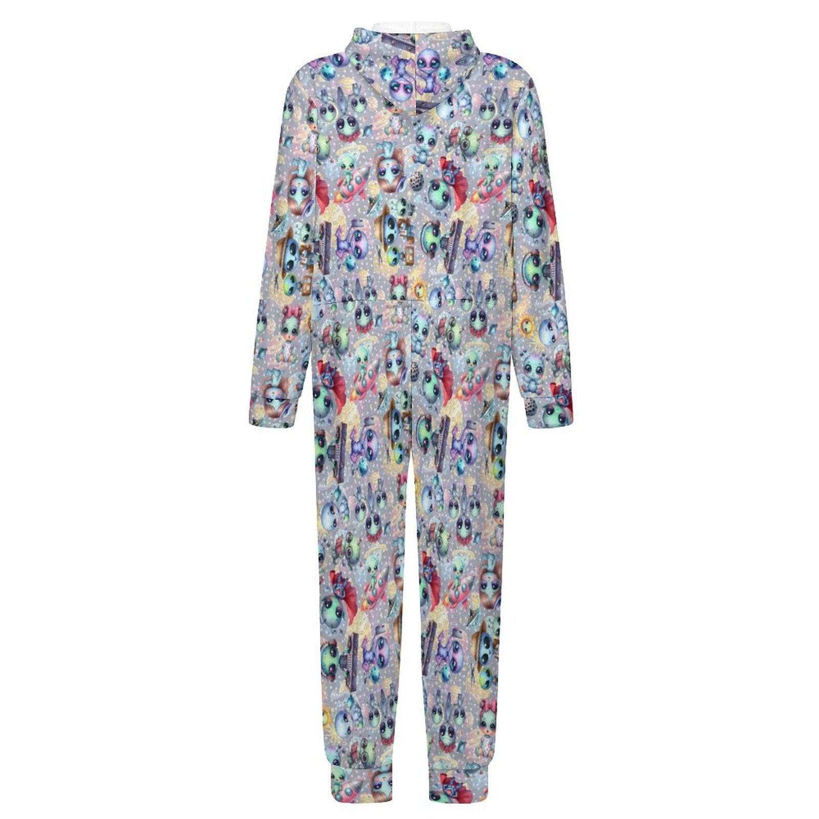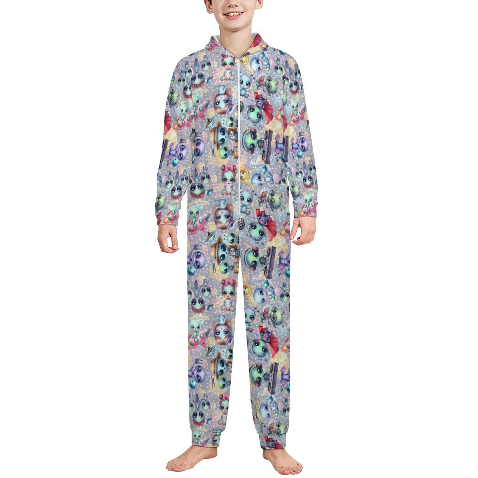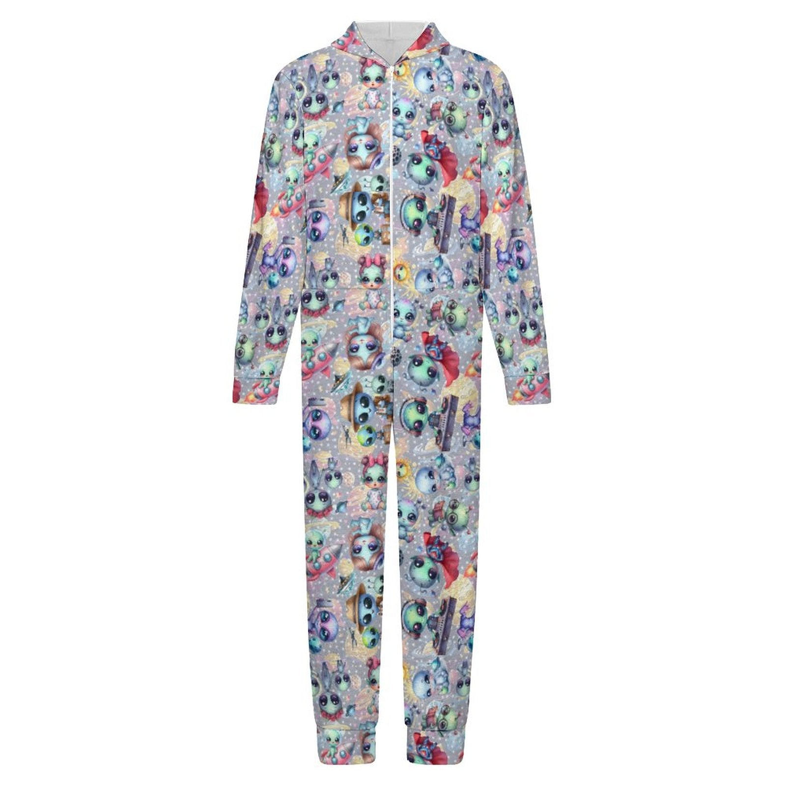 6 Alien Designs, Youth Flannel Footless Zip up Pajama Jumpsuit