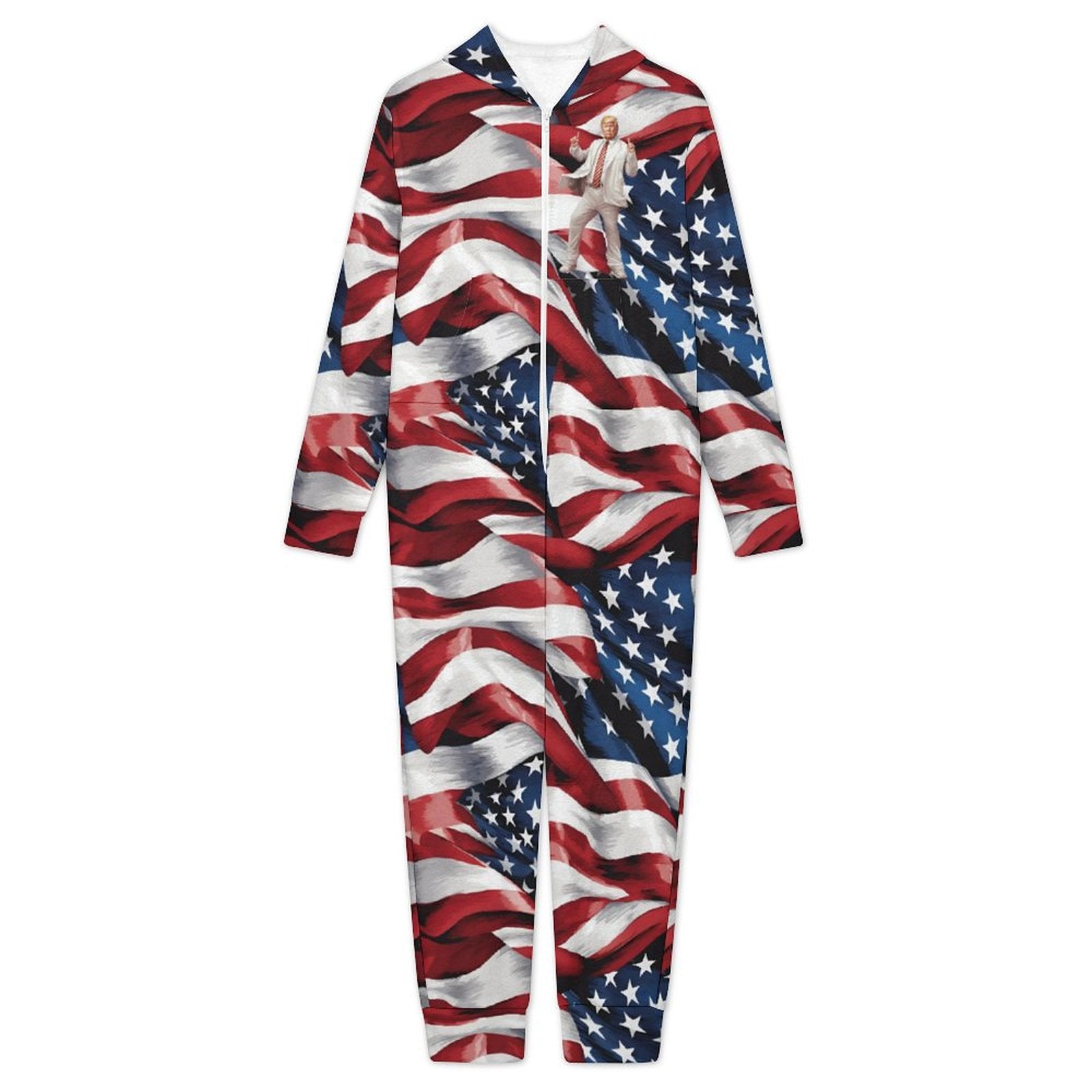 Donald Trump Dancing, Youth Flannel Footless Zip up Pajama Jumpsuit