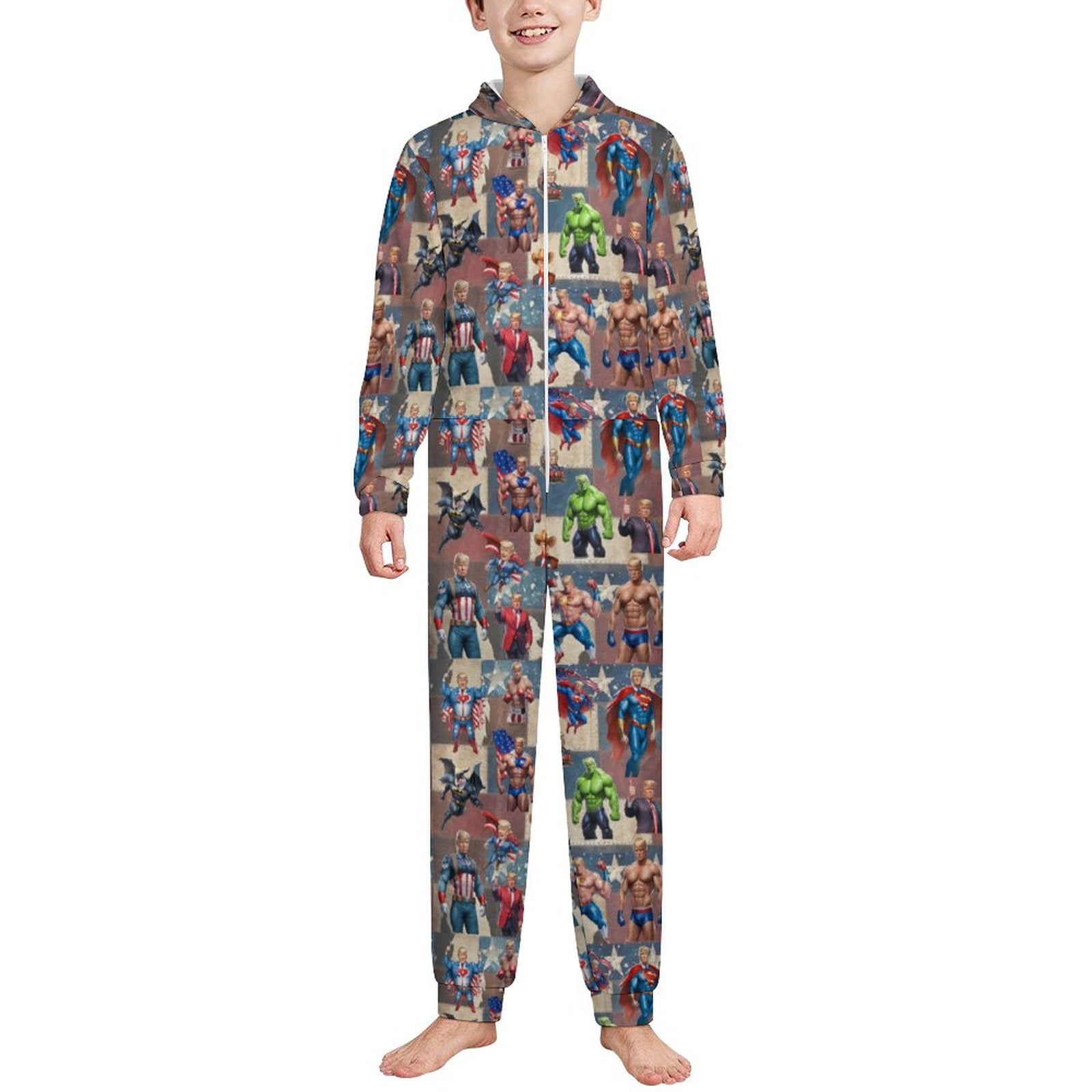 10 Trump Designs, Youth Flannel Footless Zip up Pajama Jumpsuit