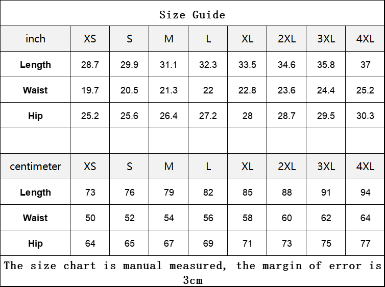 | Waist | 19.7 | 20.5 | 21.3 | 22.0 | 22.8 | 23.6 | 24.4 | 25.2 |