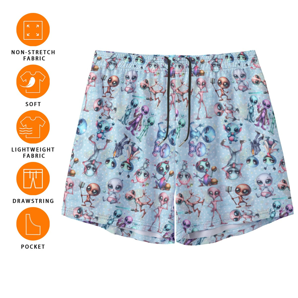 6 Alien Designs, Men’s Sports, Pocketed Shorts