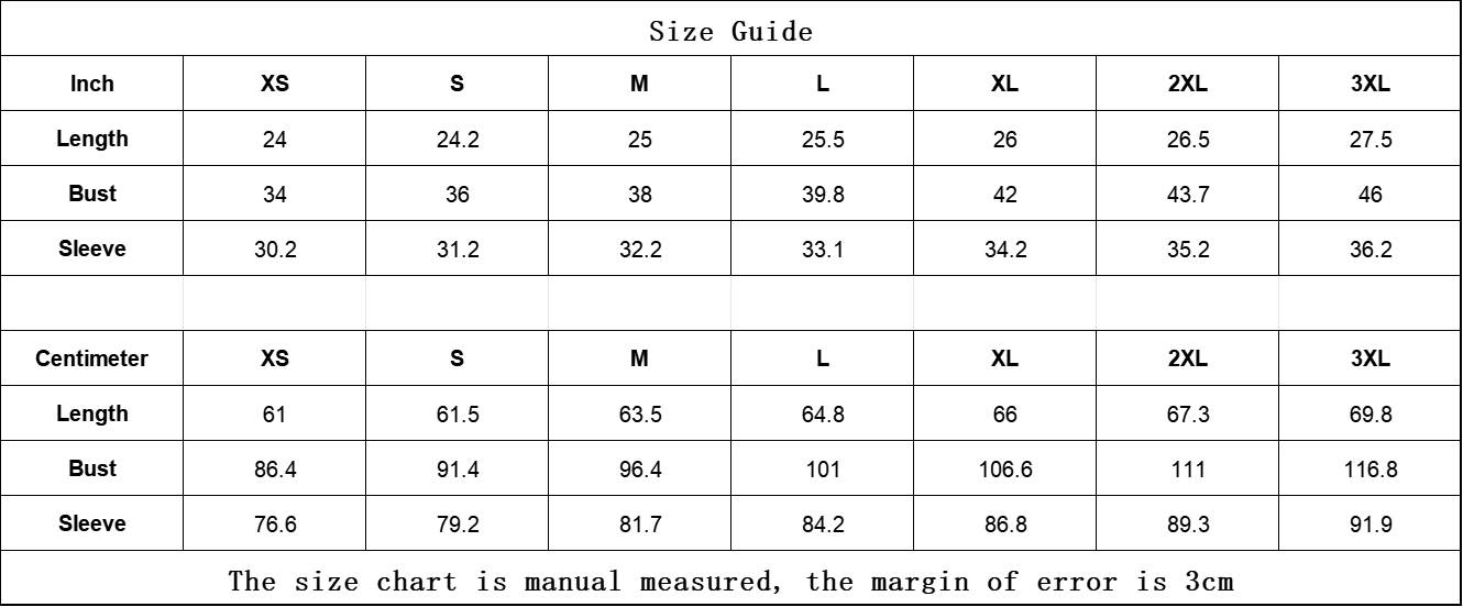 | Centimeter | XS | S | M | L | XL | 2XL | 3XL |