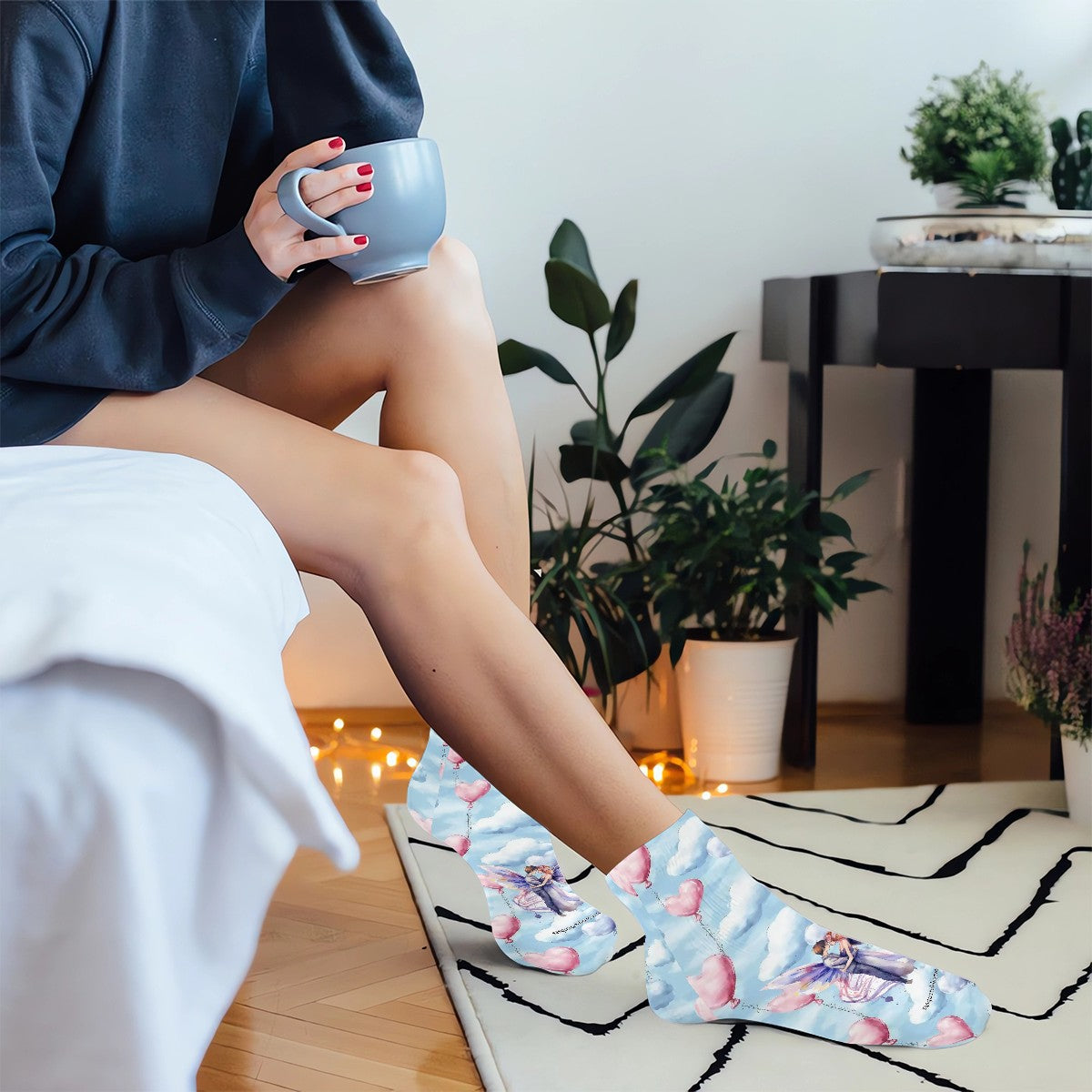 Fairies on Clouds, 8” Poly Ankle Socks