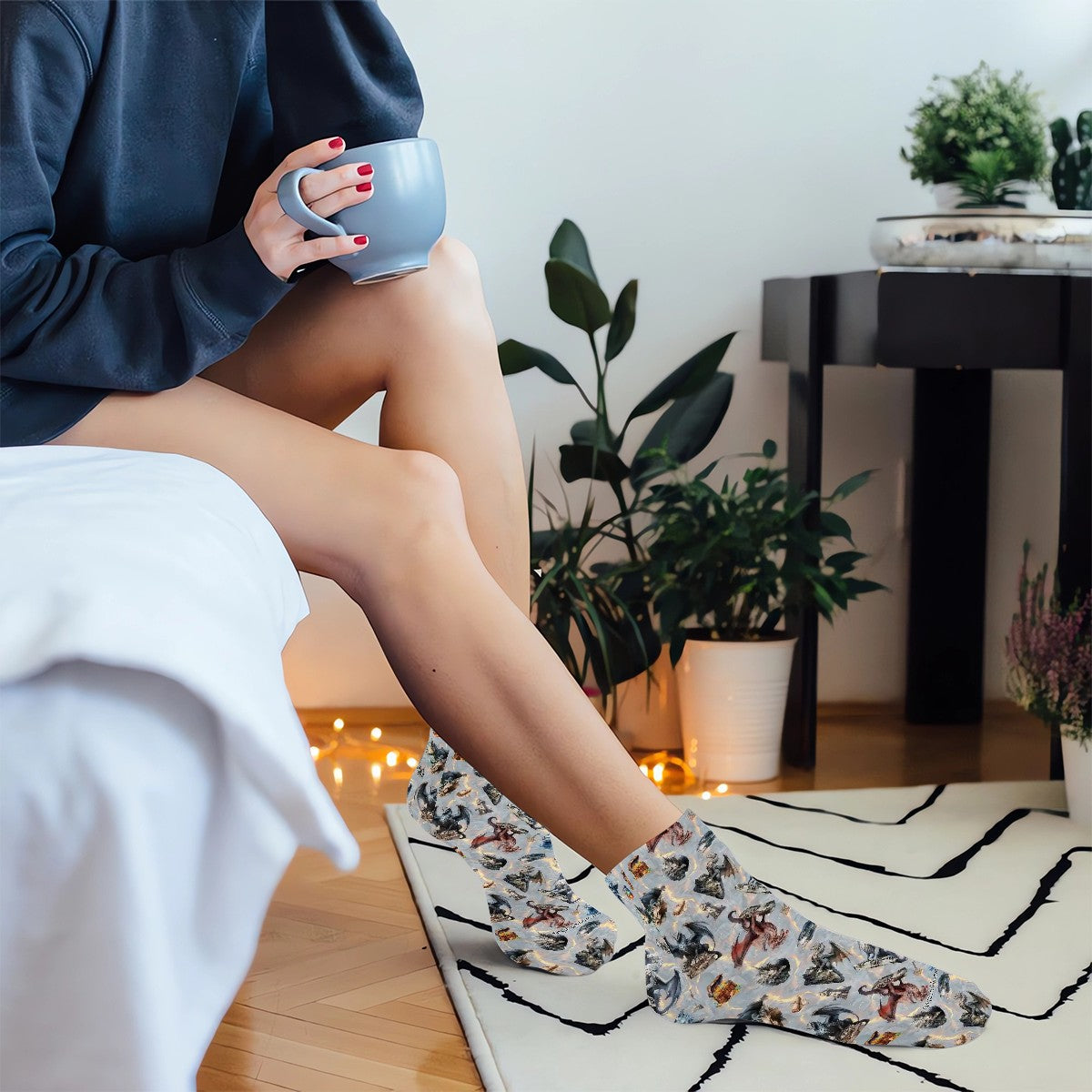 The fabric is expertly designed to be breathable, lightweight, and highly durable, ensuring your feet remain cozy without feeling overheated. Our socks boast vibrant, fade-resistant colors that maintain their brilliance wash after wash.