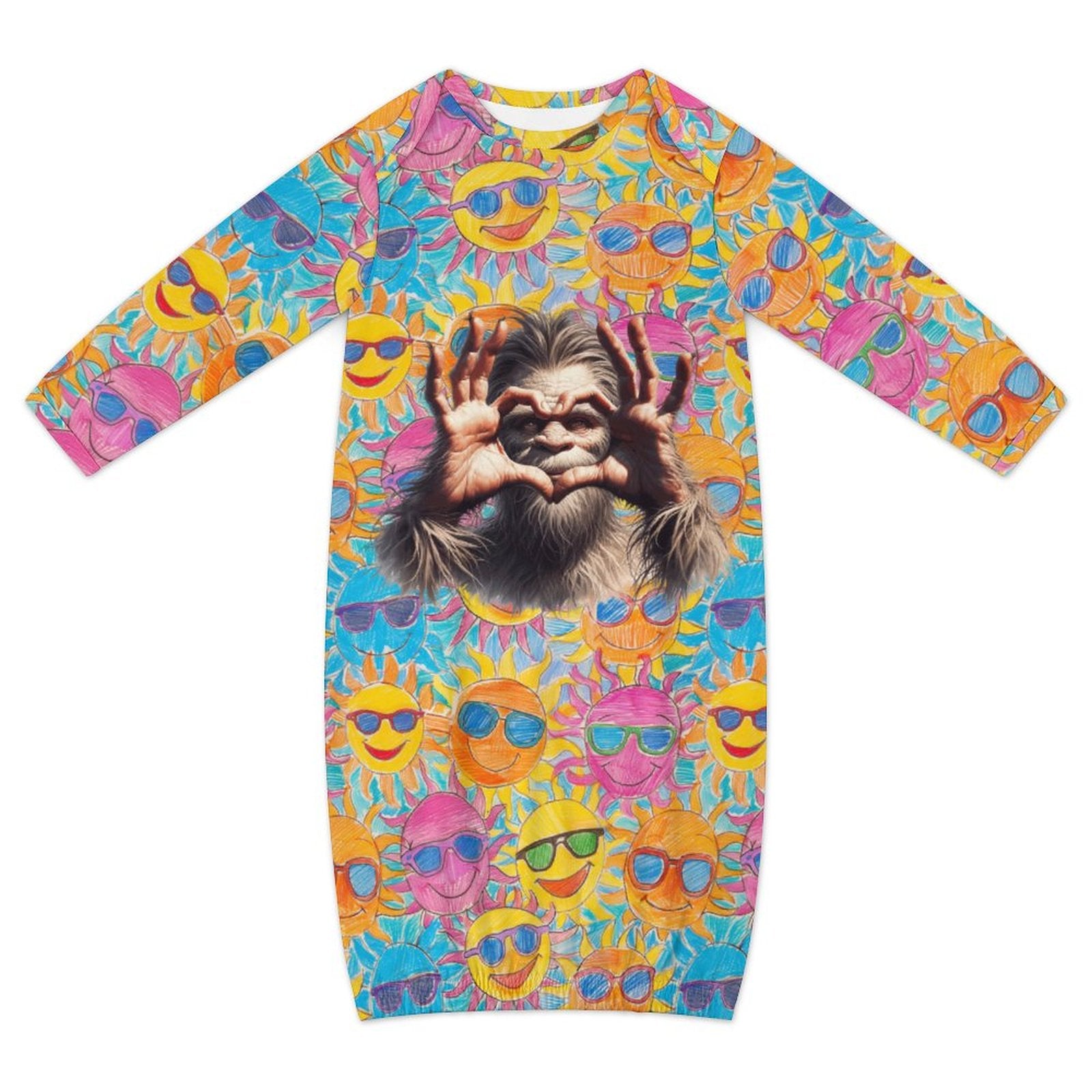 Bigfoot / Sasquatch Heart on Suns, Baby Long Sleeve Faux Cotton Sleeper Gown