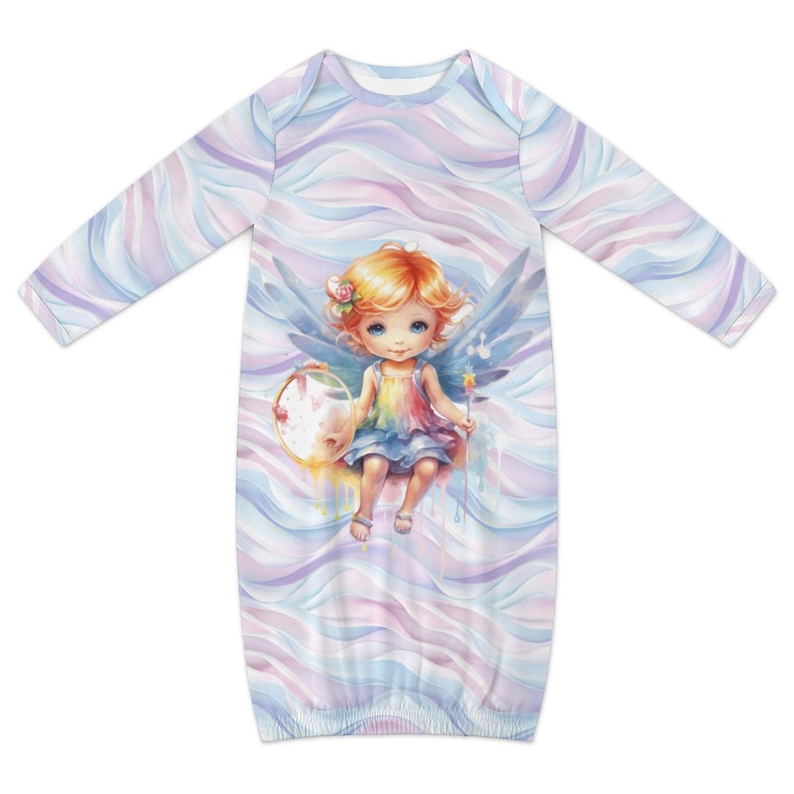Fairy on Swirls, Baby Long Sleeve Faux Cotton Sleeper Gown