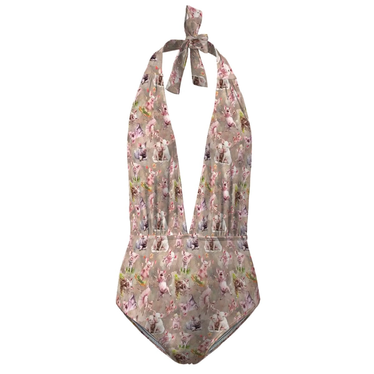 10 Animal Designs, Women’s Deep V One Piece Swimsuit