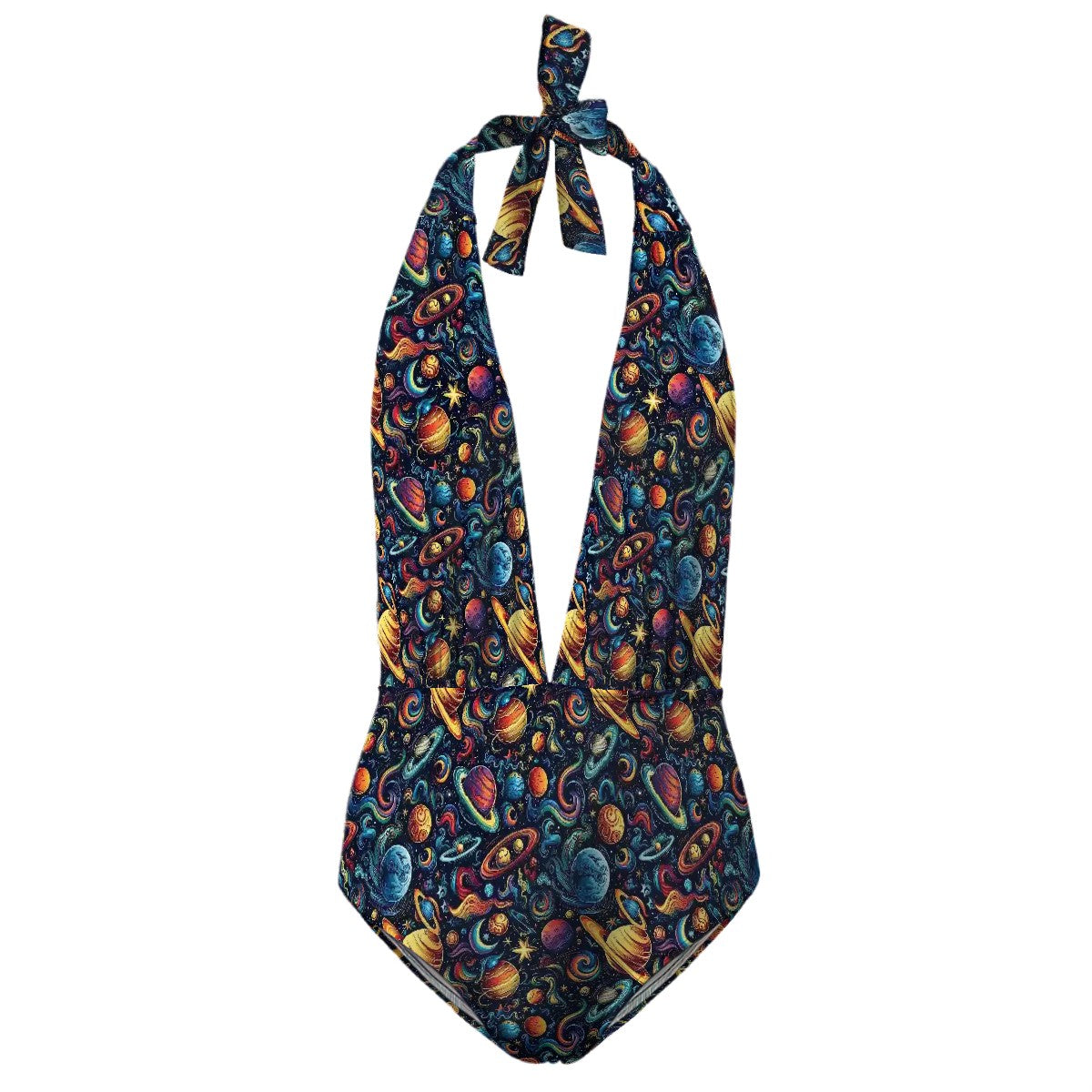 12 Galaxy, Outer Space Designs, Women’s Deep V One Piece Swimsuit