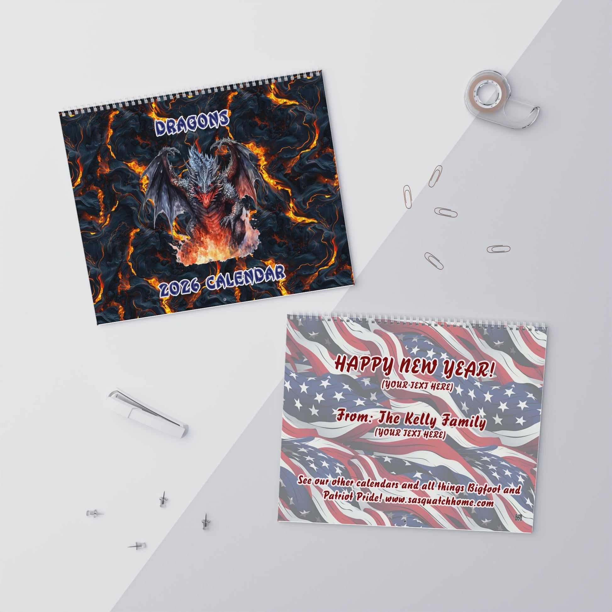 Dragons, 2026 14"x 11" inch Wall Calendar Personalize As Gift Home Decor, Gift for Holidays, Office Organization