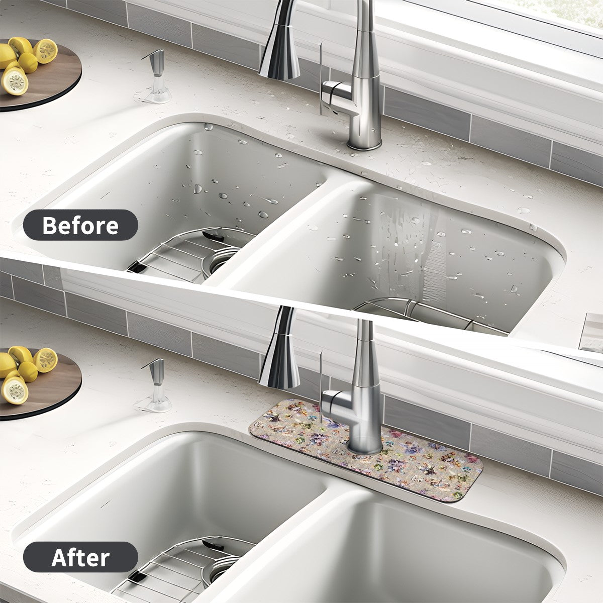 Transform your kitchen or bathroom sink area with our exceptional Faucet Mat made from Diatomaceous Earth. Measuring a convenient 15.0"x5.5", this mat is not only aesthetically pleasing with its single-sided printing design, but it also boasts impressive functionality. The highly absorbent material effectively prevents water leakage, ensuring that your countertop remains clean and dry, while the added convenience of a customizable 2.5" hole allows for a personalized fit around your faucet.