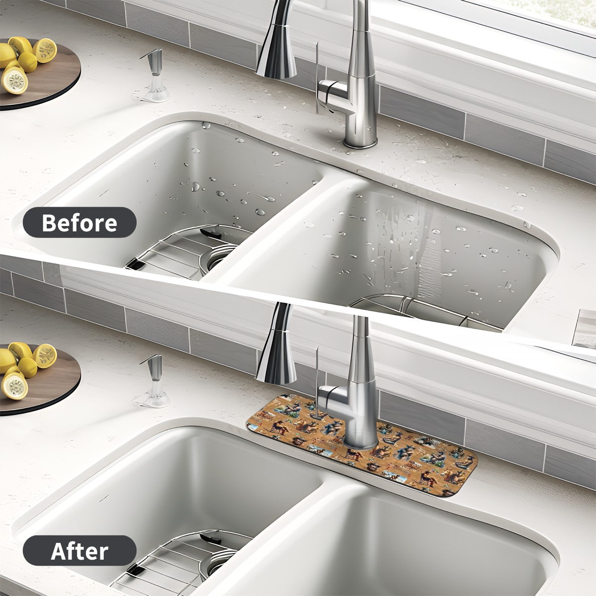 Transform your kitchen or bathroom sink area with our exceptional Faucet Mat made from Diatomaceous Earth. Measuring a convenient 15.0"x5.5", this mat is not only aesthetically pleasing with its single-sided printing design, but it also boasts impressive functionality. The highly absorbent material effectively prevents water leakage, ensuring that your countertop remains clean and dry, while the added convenience of a customizable 2.5" hole allows for a personalized fit around your faucet.