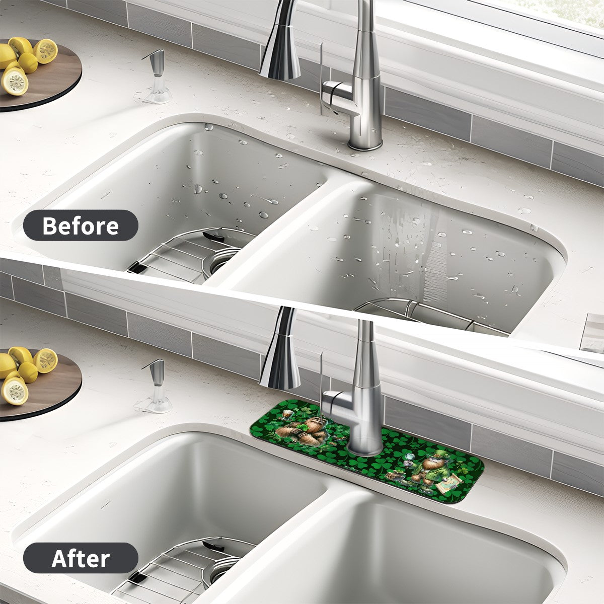 Bigfoot Sasquatch Leprechaun, St Patrick, Faucet Mat