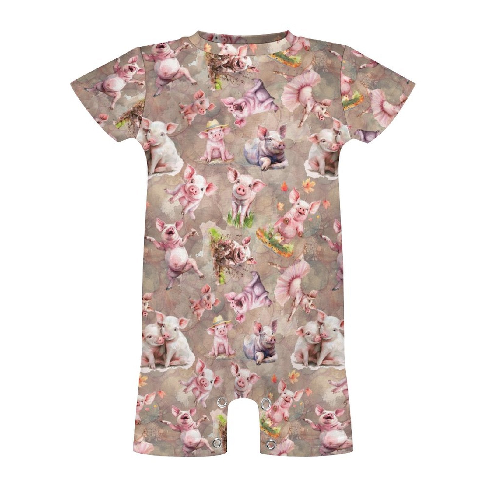 10 Animal Designs, Faux Cotton Short Sleeve Baby Bodysuit Romper