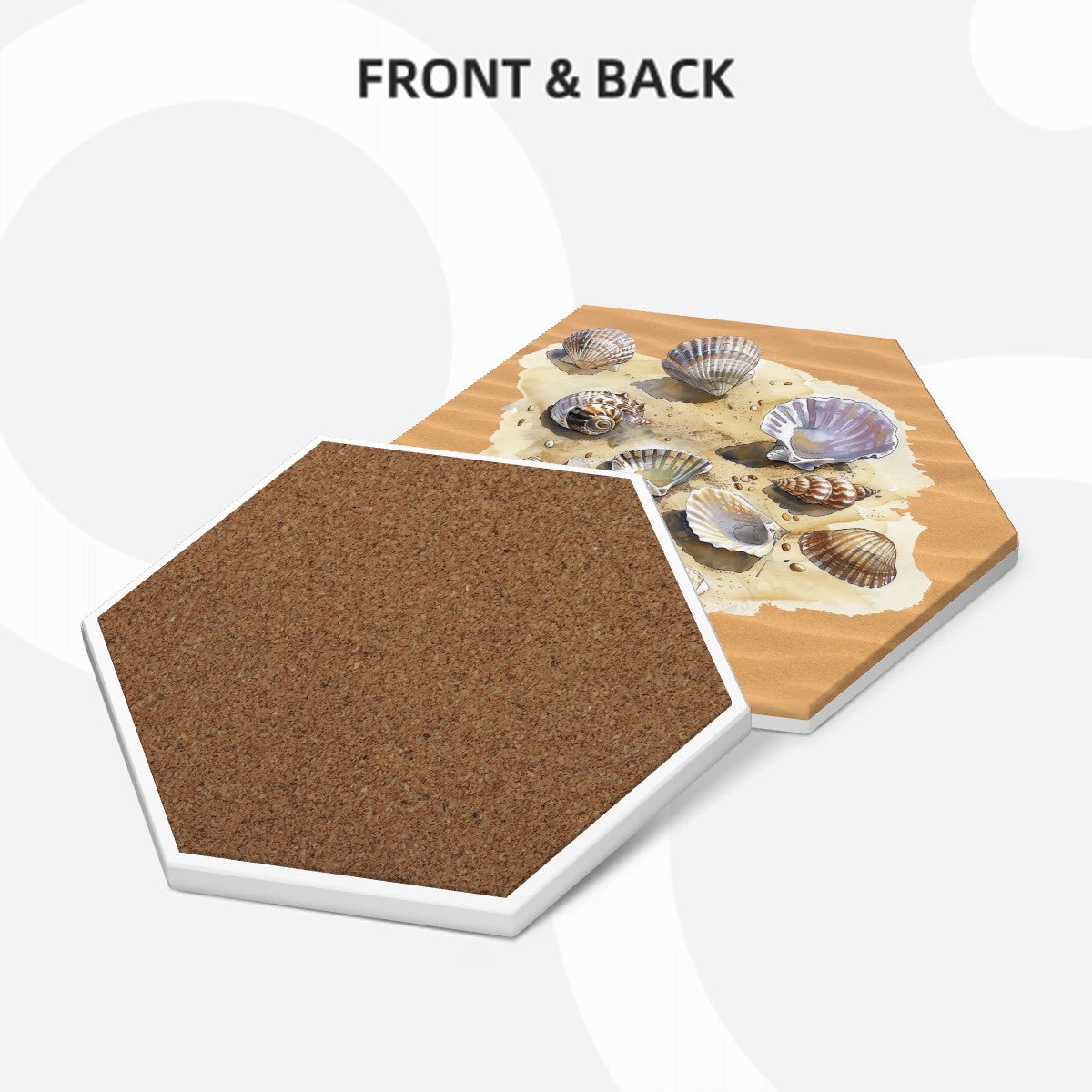 Beach Themed, 6 Ceramic Coasters w metal stand