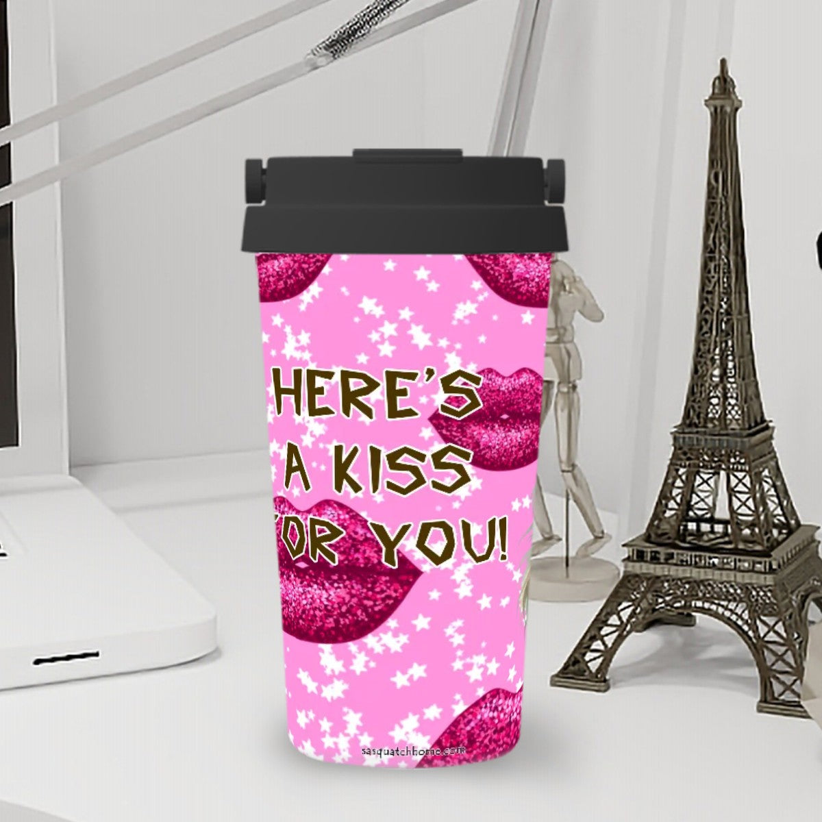 Bigfoot / Sasquatch Kiss, 17 oz Insulated Coffee Mug with Lid & Carrying Handle