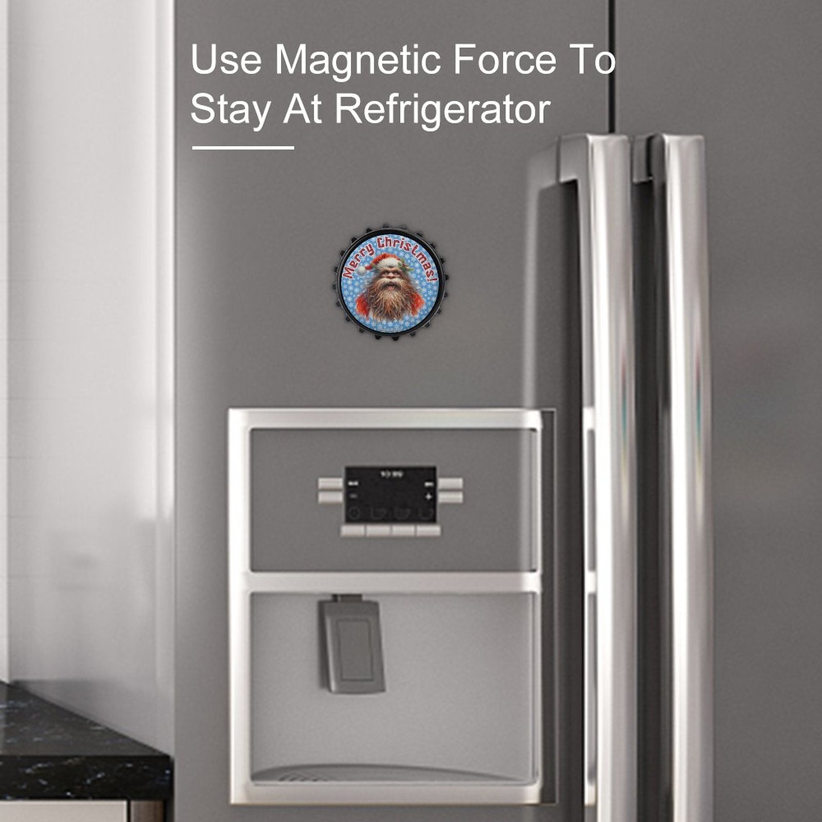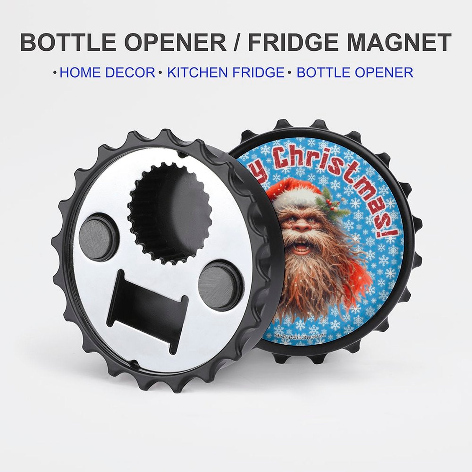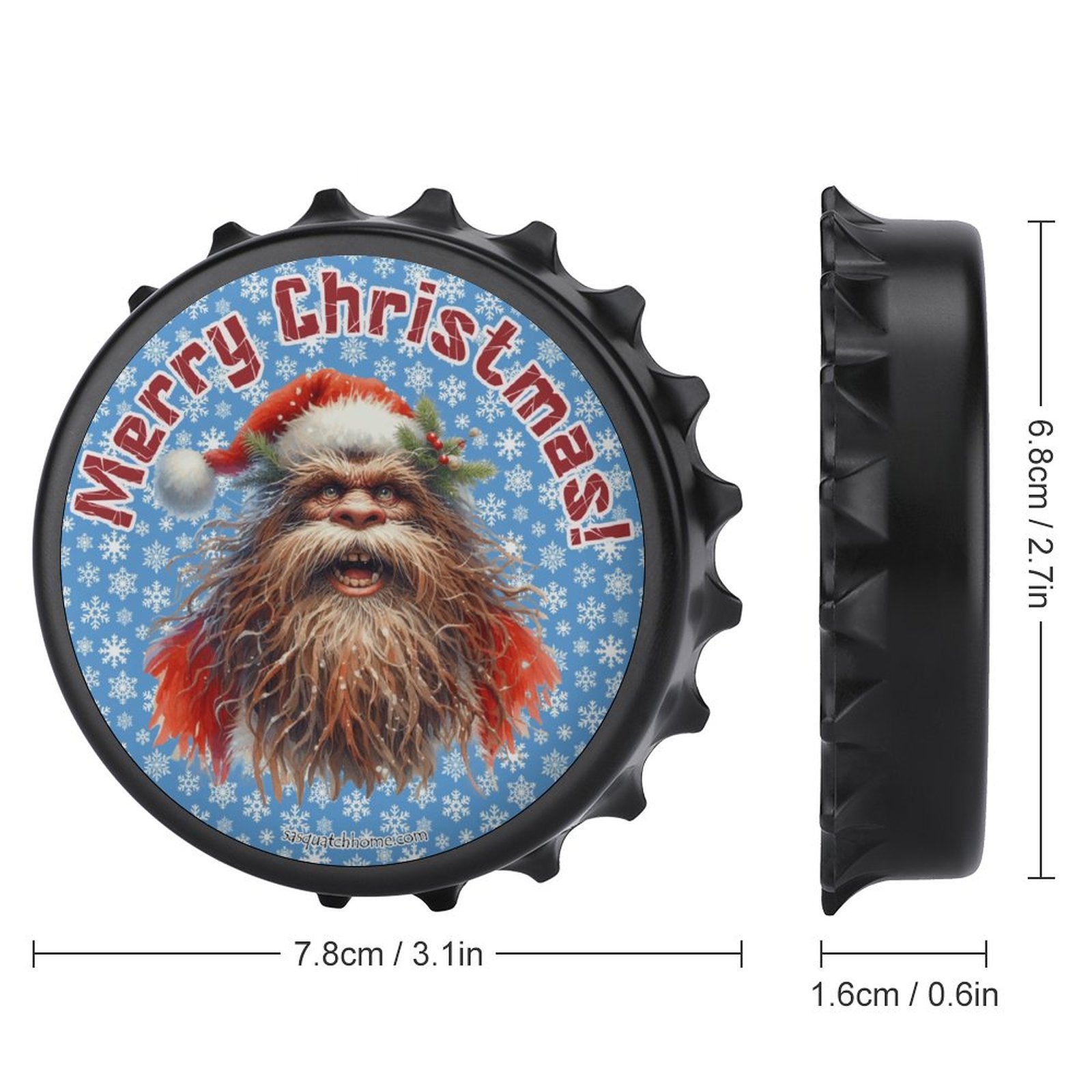 Bigfoot / Sasquatch Santa "Merry Christmas", 3” Magnetic Can Opener / Coaster / Fridge Decor