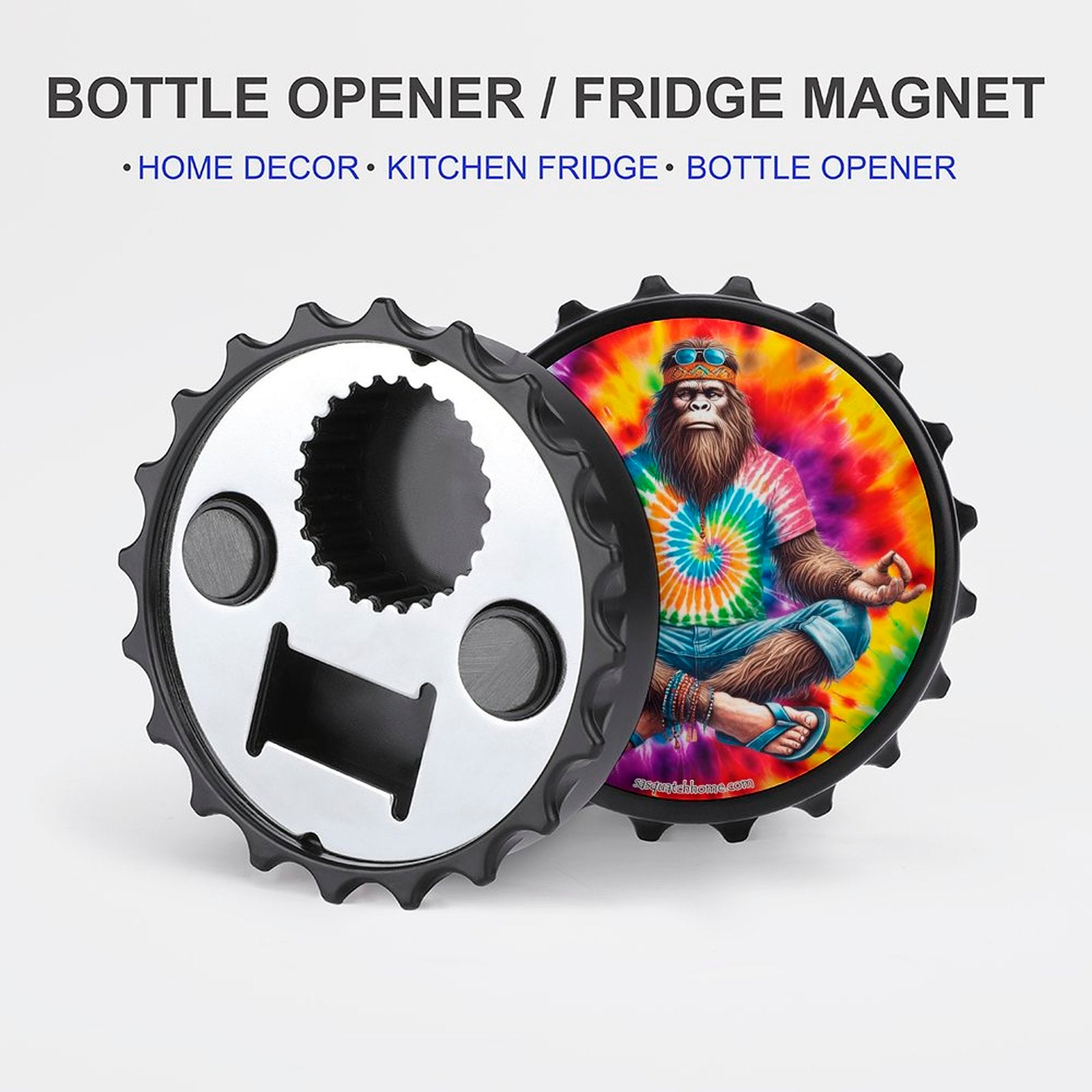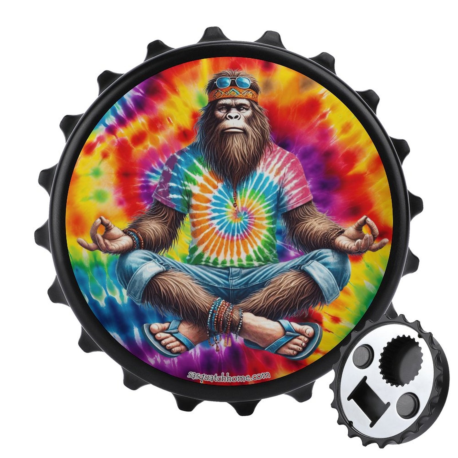 Bigfoot / Sasquatch Yoga, Zen, 3” Magnetic Can Opener / Coaster / Fridge Decor