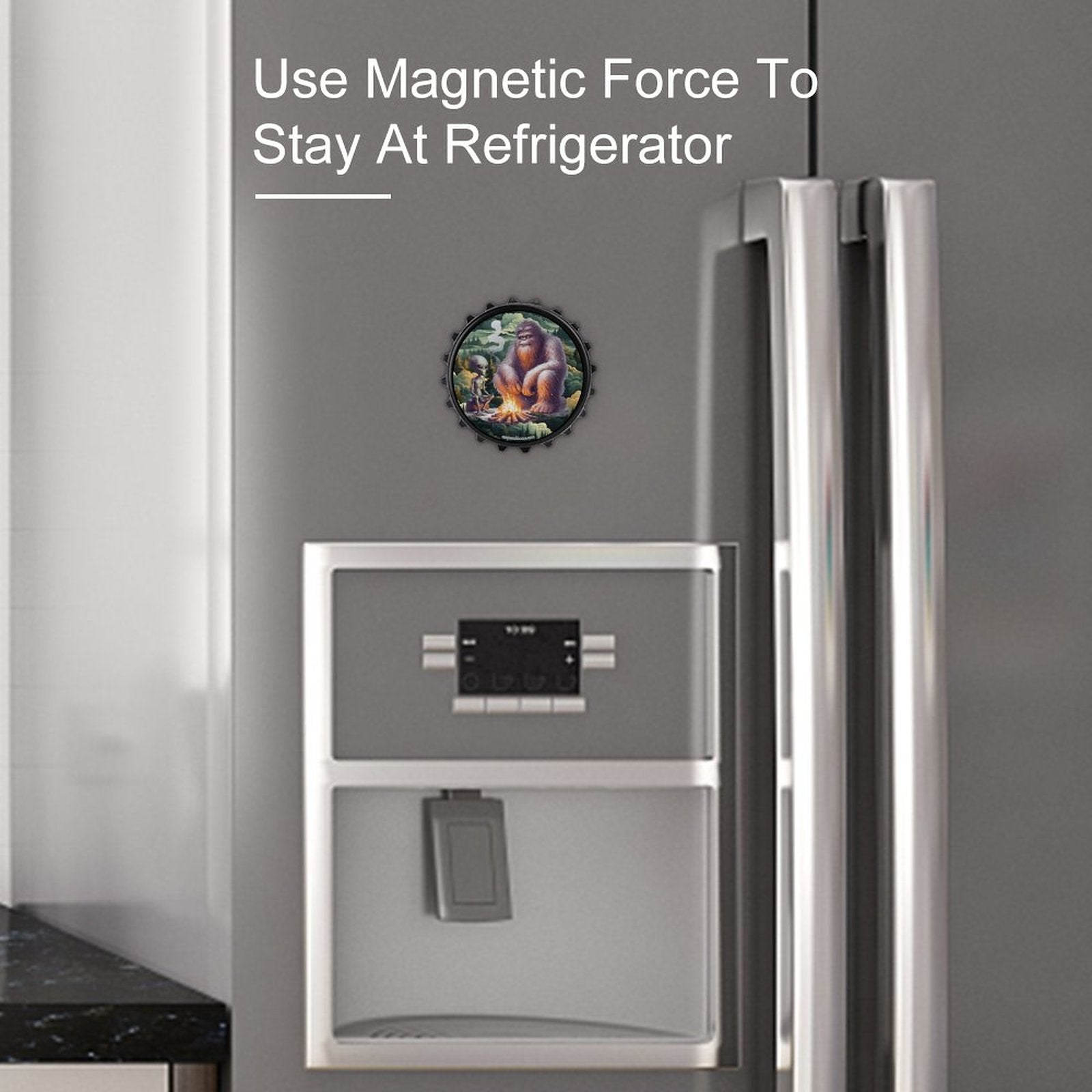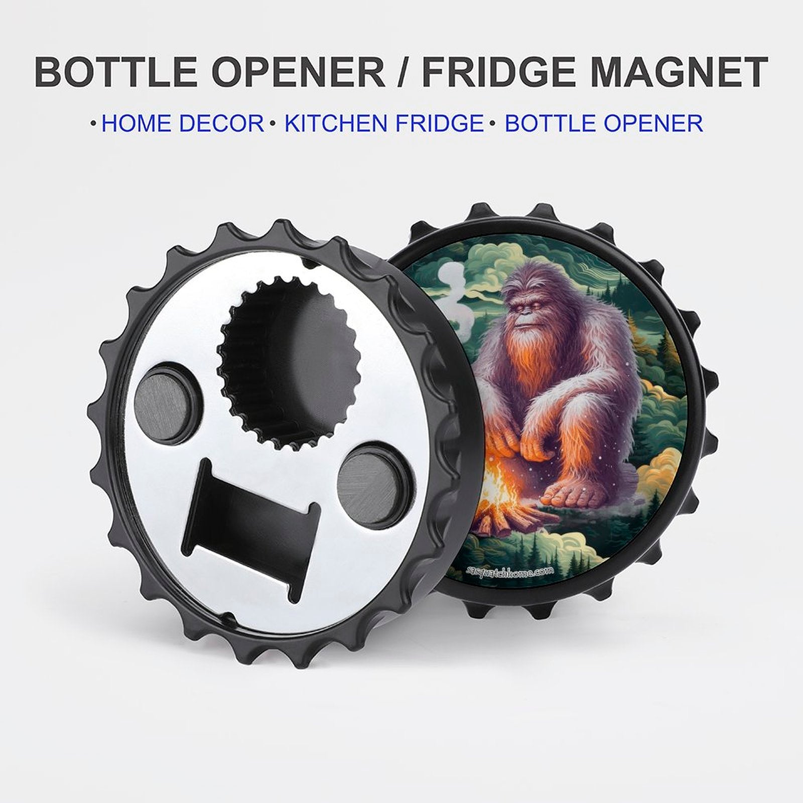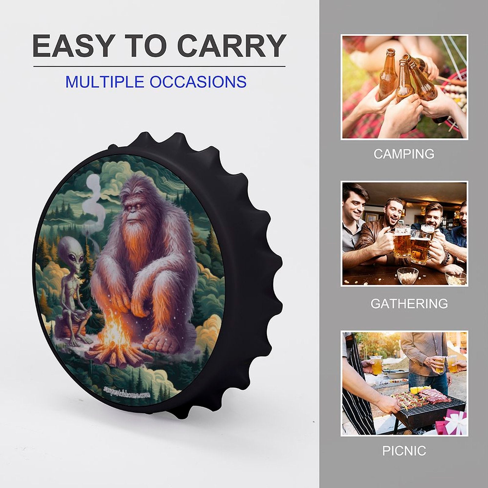 Bigfoot / Sasquatch with Alien, 3” Magnetic Can Opener / Coaster / Fridge Decor