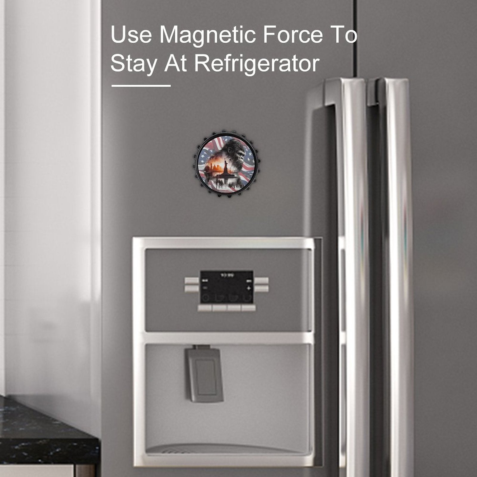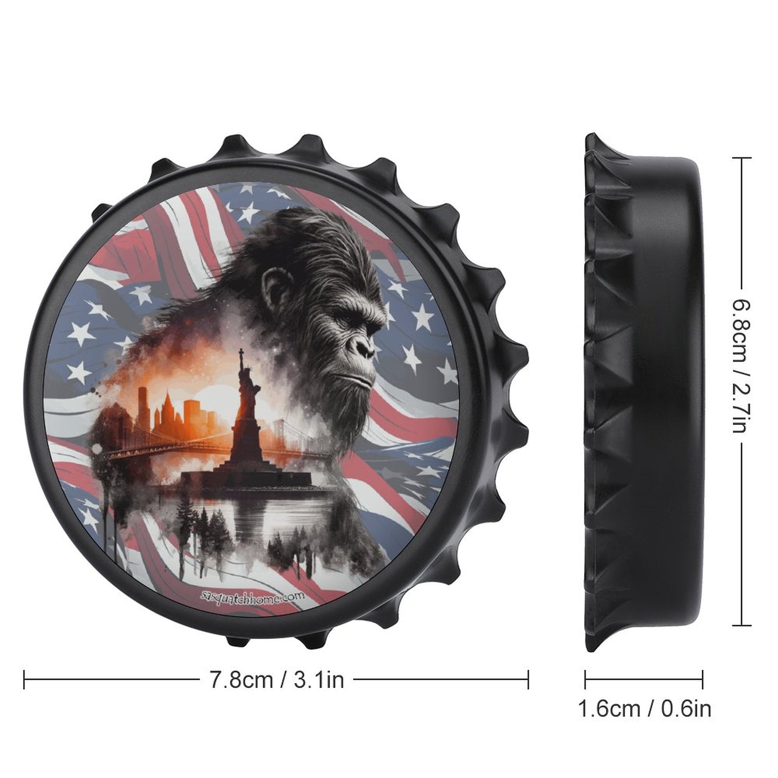 Patriot Bigfoot Sasquatch, 3” Magnetic Can Opener / Coaster / Fridge Decor