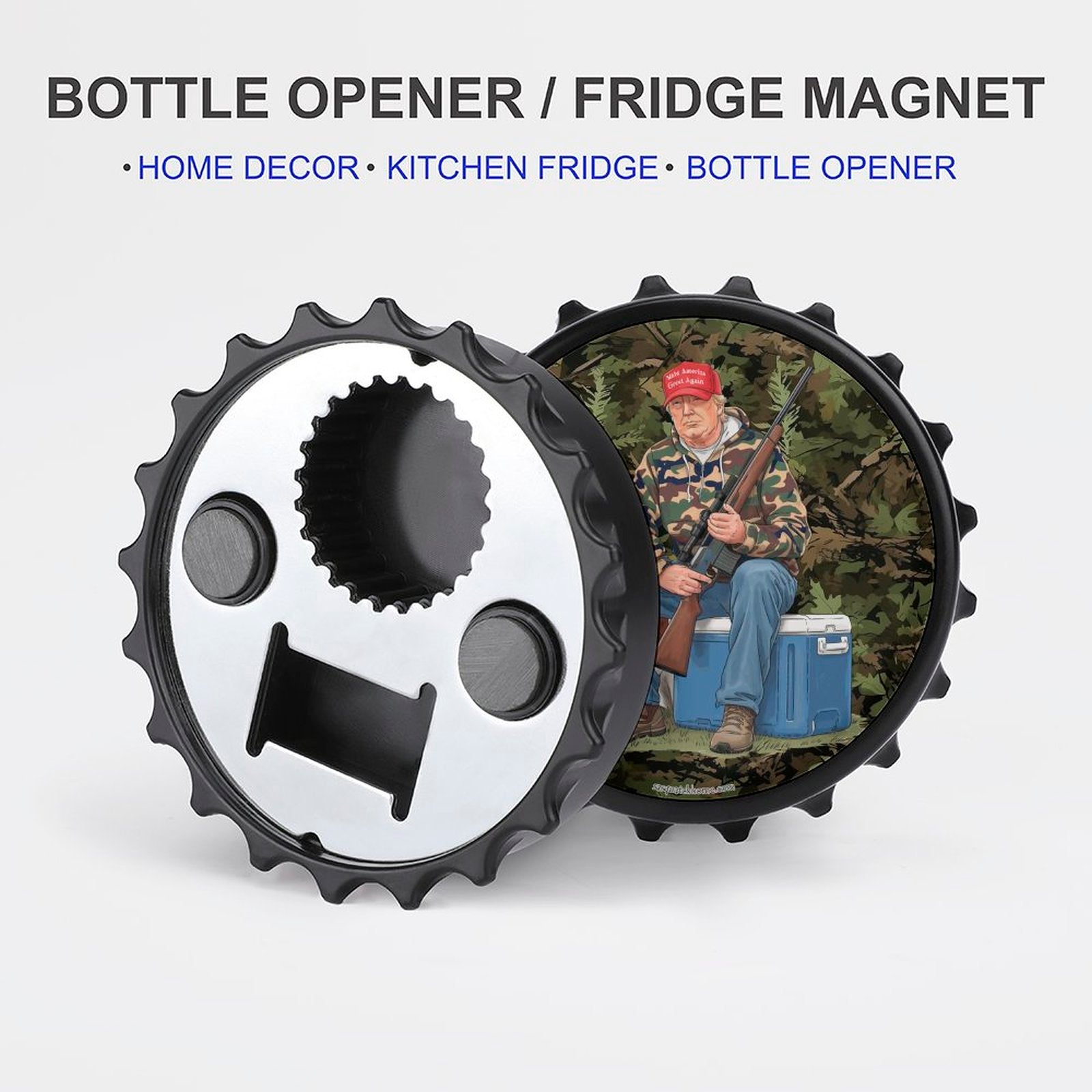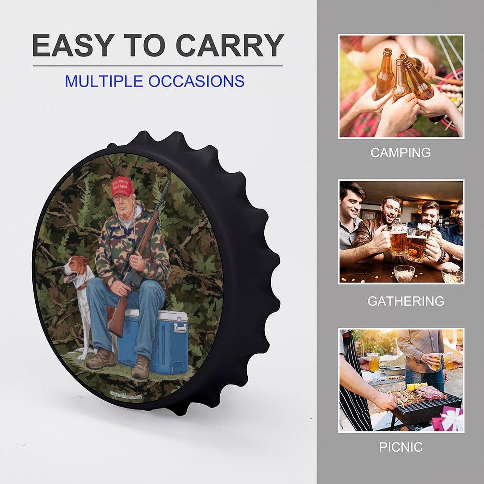 Donald Trump Hunting, 3” Magnetic Can Opener / Coaster / Fridge Decor