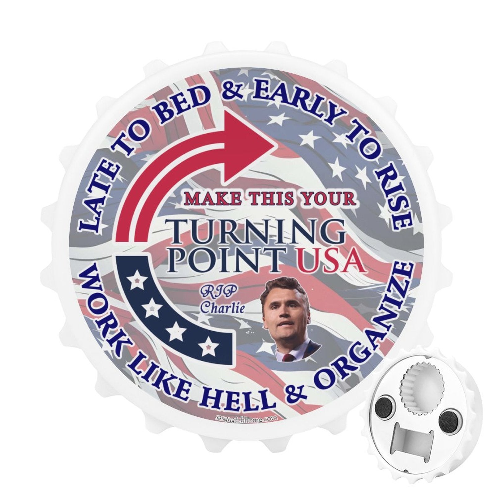 Charlie Kirk, Turning Point, Memorial, 3” Magnetic Can Opener / Coaster / Fridge Decor