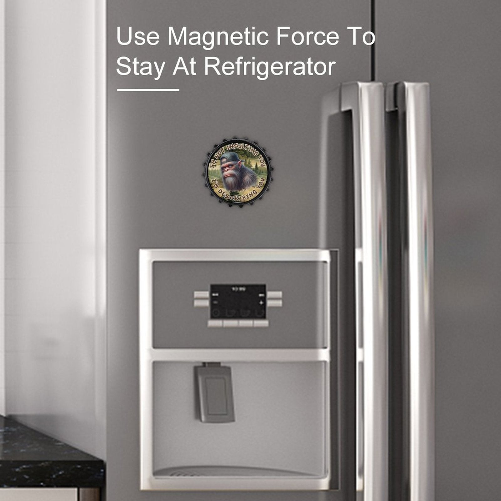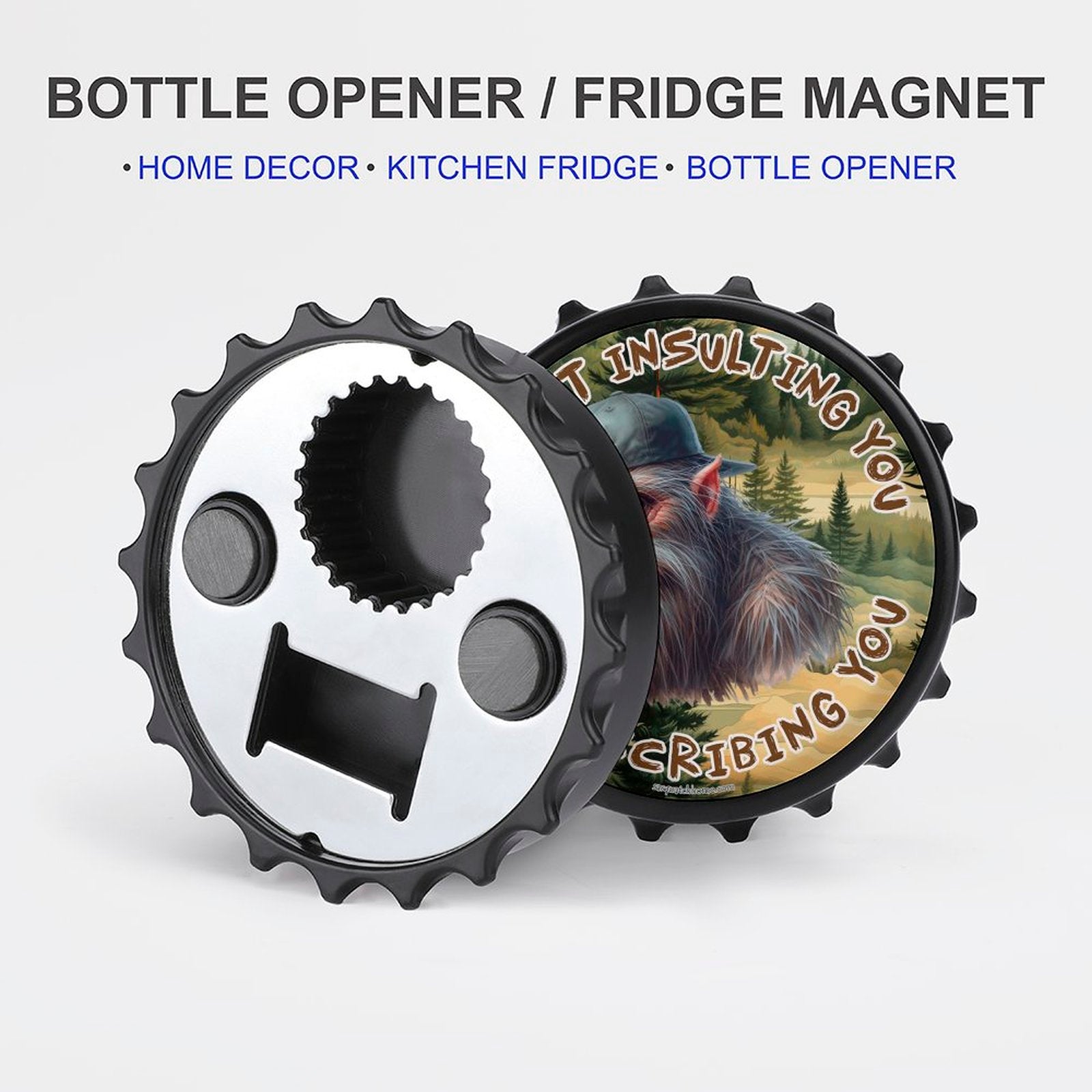 Bigfoot Sasquatch "I'm not insulting..", 3” Magnetic Can Opener / Coaster / Fridge Decor