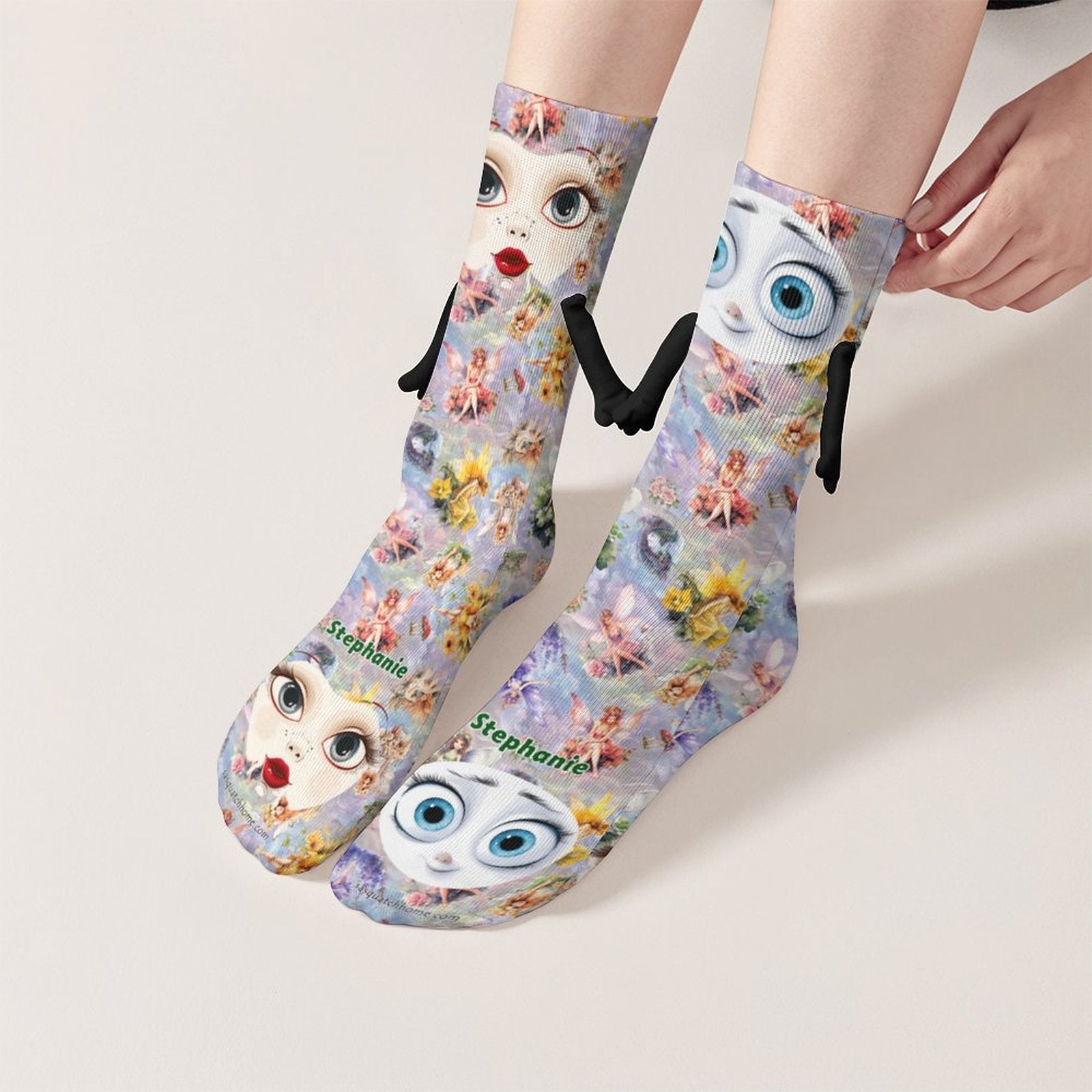 Girl Faces, Magnetic Holding Hands Funny Socks – PERSONALIZE FREE