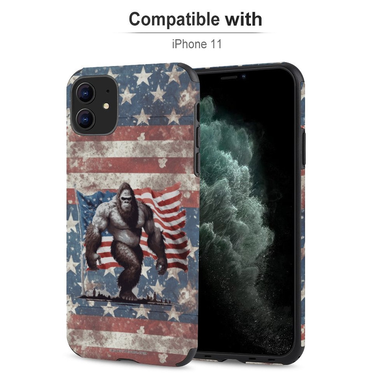 Bigfoot Sasquatch With Flag, Microfiber iPhone 11 Cases