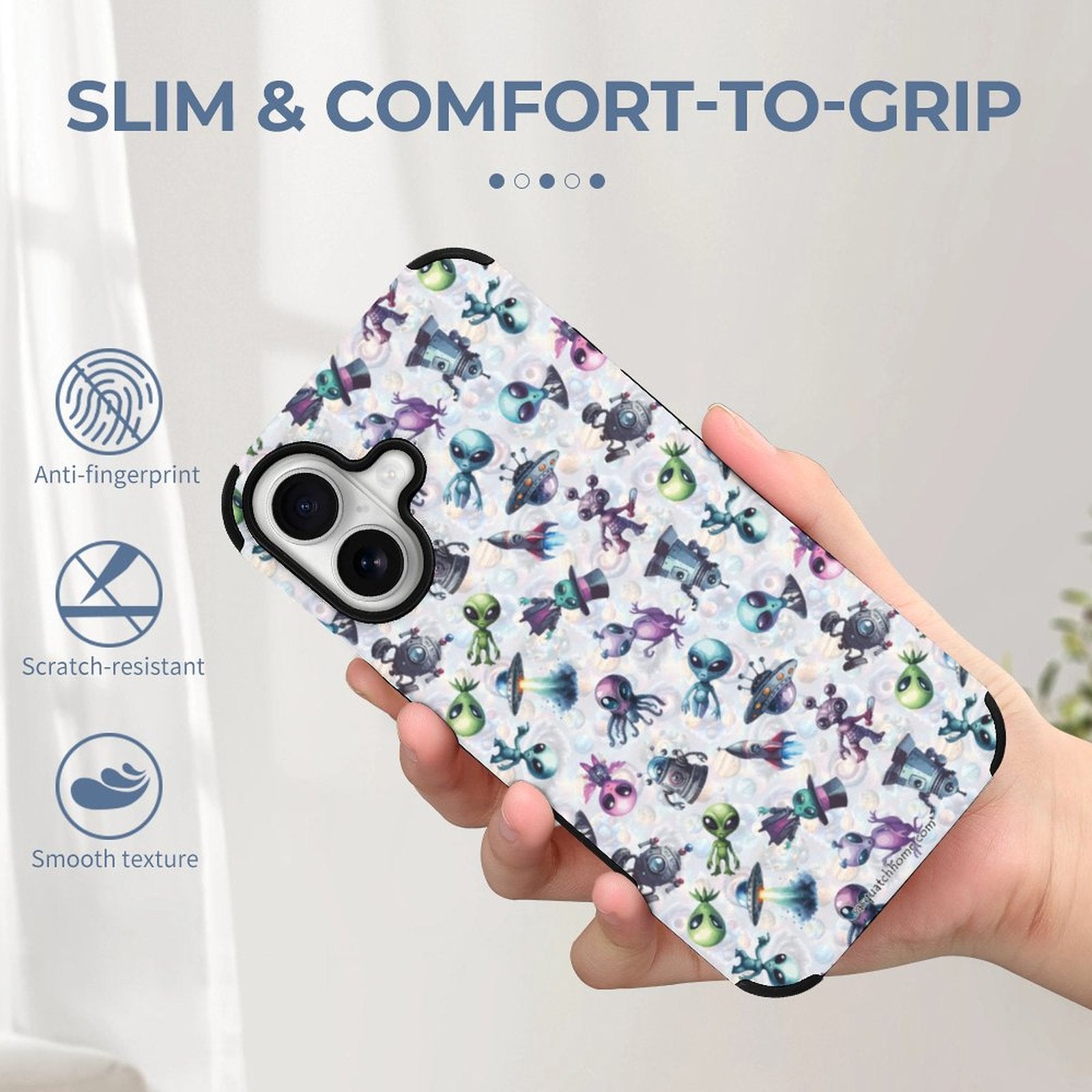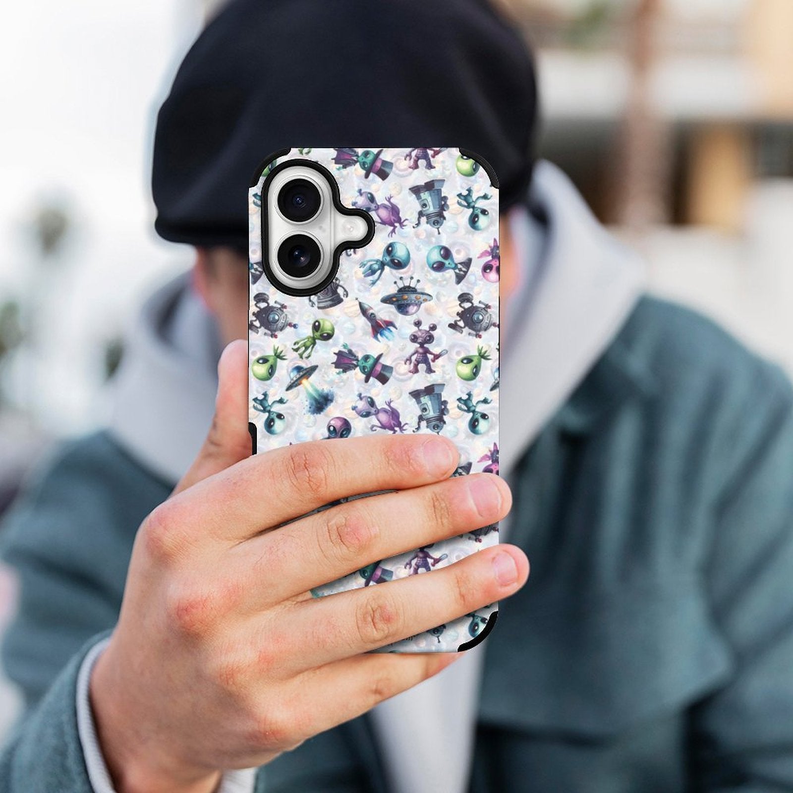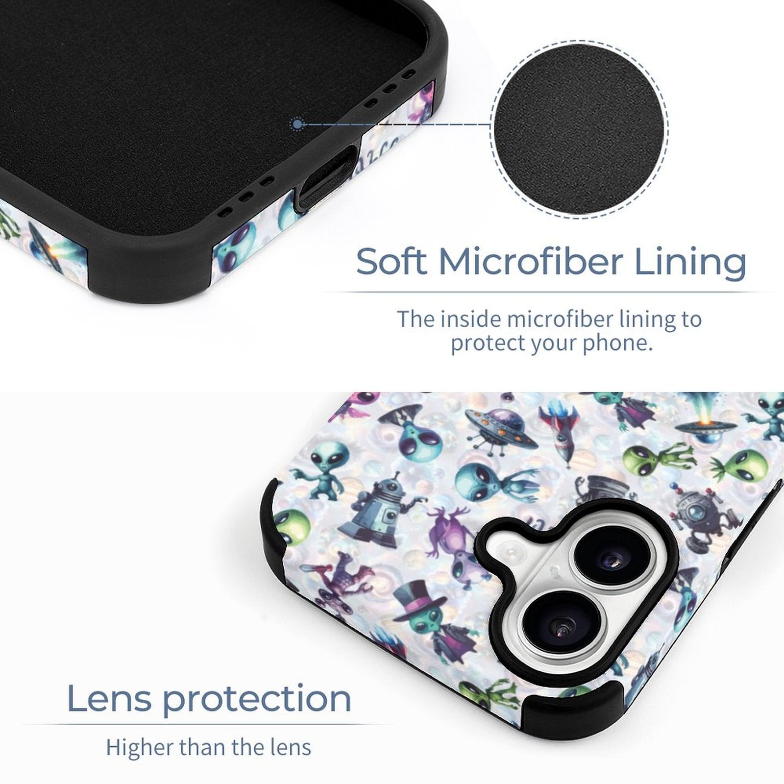 6 Alien Designs, Microfiber iPhone 16 Cases