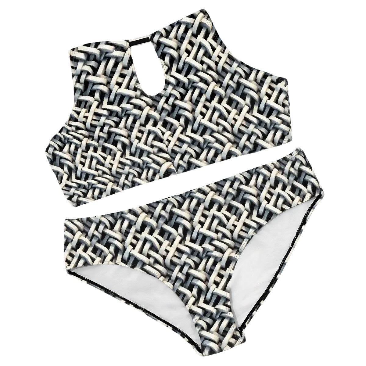 Weave Optical Illusion, Plus Size High-Waisted Bikini Customized Services