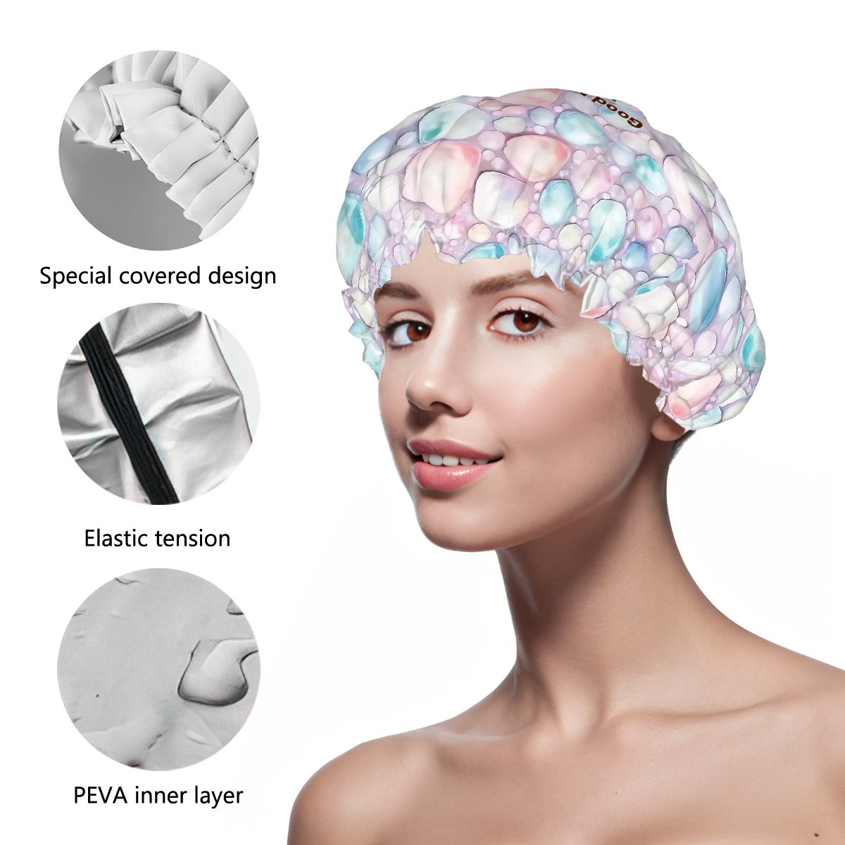 Made from a high-quality waterproof fabric, this shower cap features a durable polyester outer layer combined with a PEVA inner lining, ensuring that it’s not only waterproof but also skin-friendly and soft to the touch.