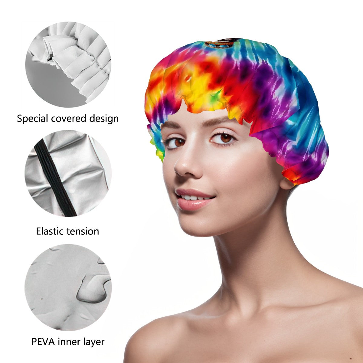 Made from a high-quality waterproof fabric, this shower cap features a durable polyester outer layer combined with a PEVA inner lining, ensuring that it’s not only waterproof but also skin-friendly and soft to the touch.