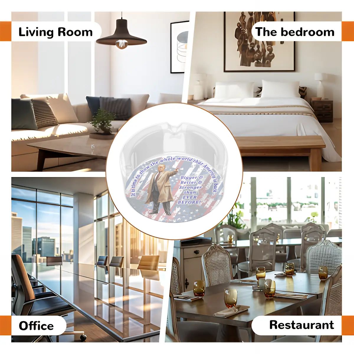 3 .3" Round, Lead Free Glass Ashtray - Donald Trump "It's time to let the world know.."