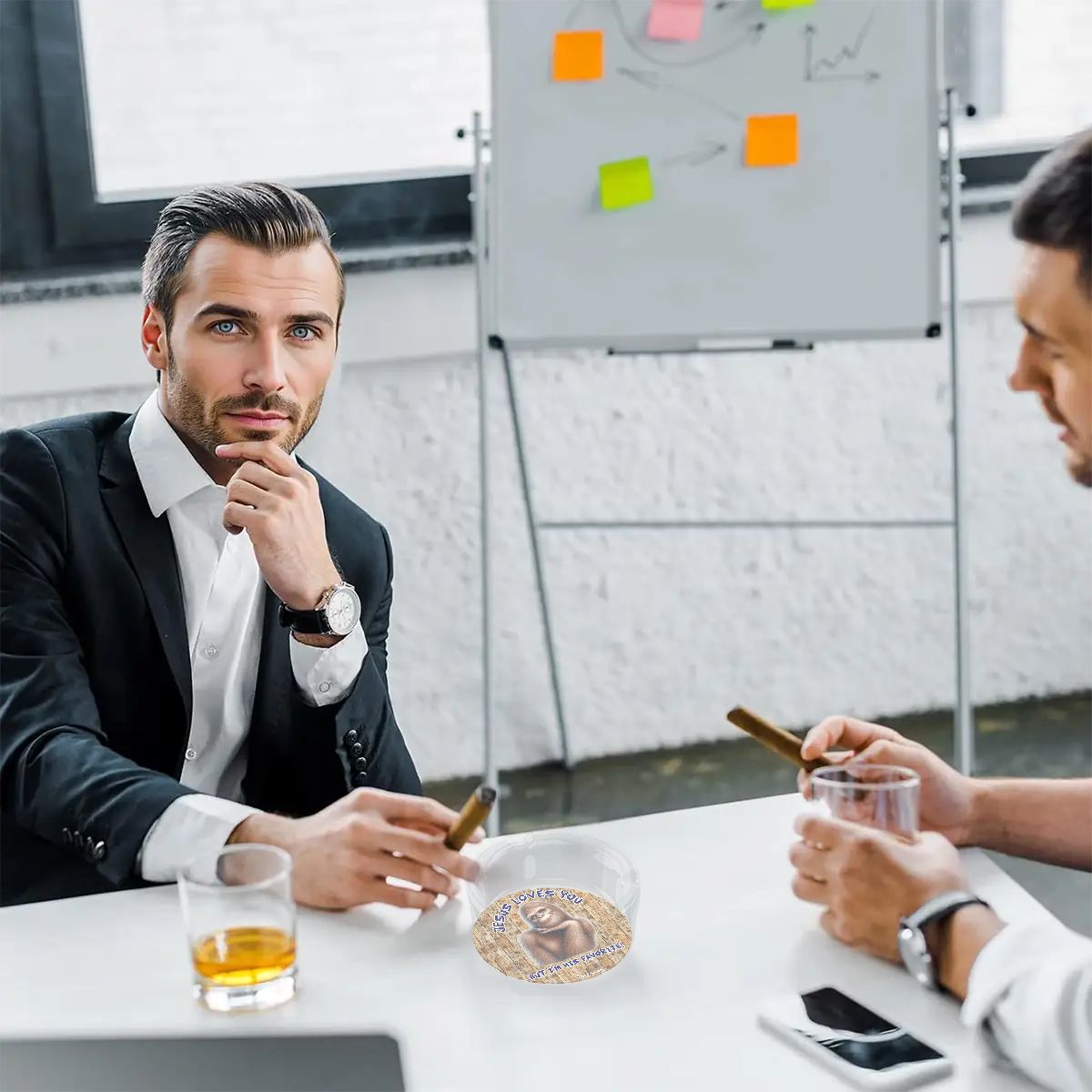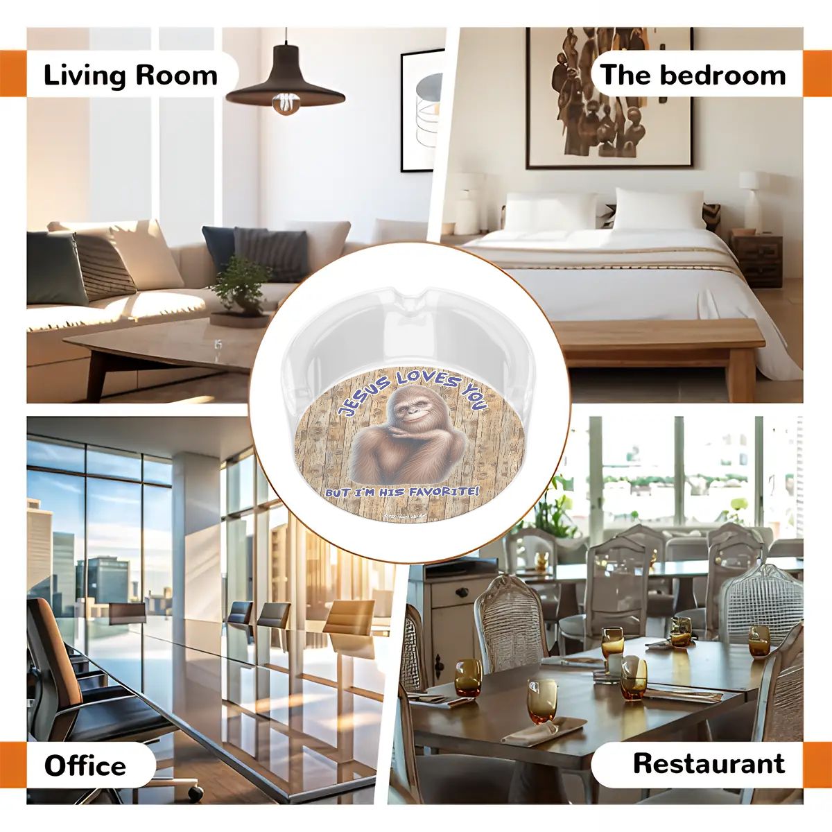 3 .3" Round, Lead Free Glass Ashtray - Bigfoot, Sasquatch, "Jesus loves you..."