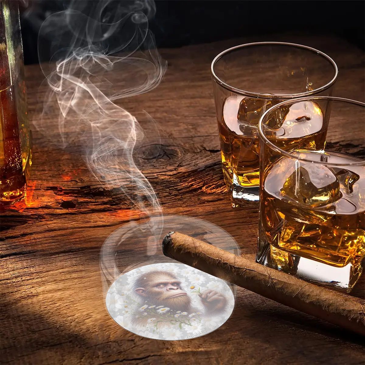 3 .3" Round, Lead Free Glass Ashtray - Sasquatch, Bigfoot, Daisies