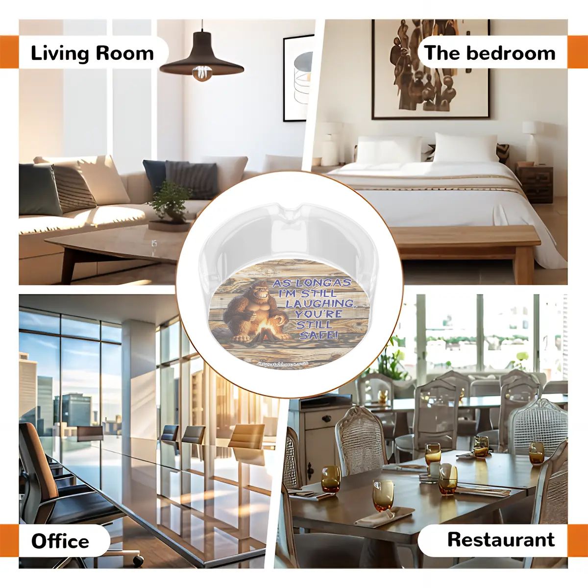 3 .3" Round, Lead Free Glass Ashtray - Bigfoot, Sasquatch "As long as I'm..."