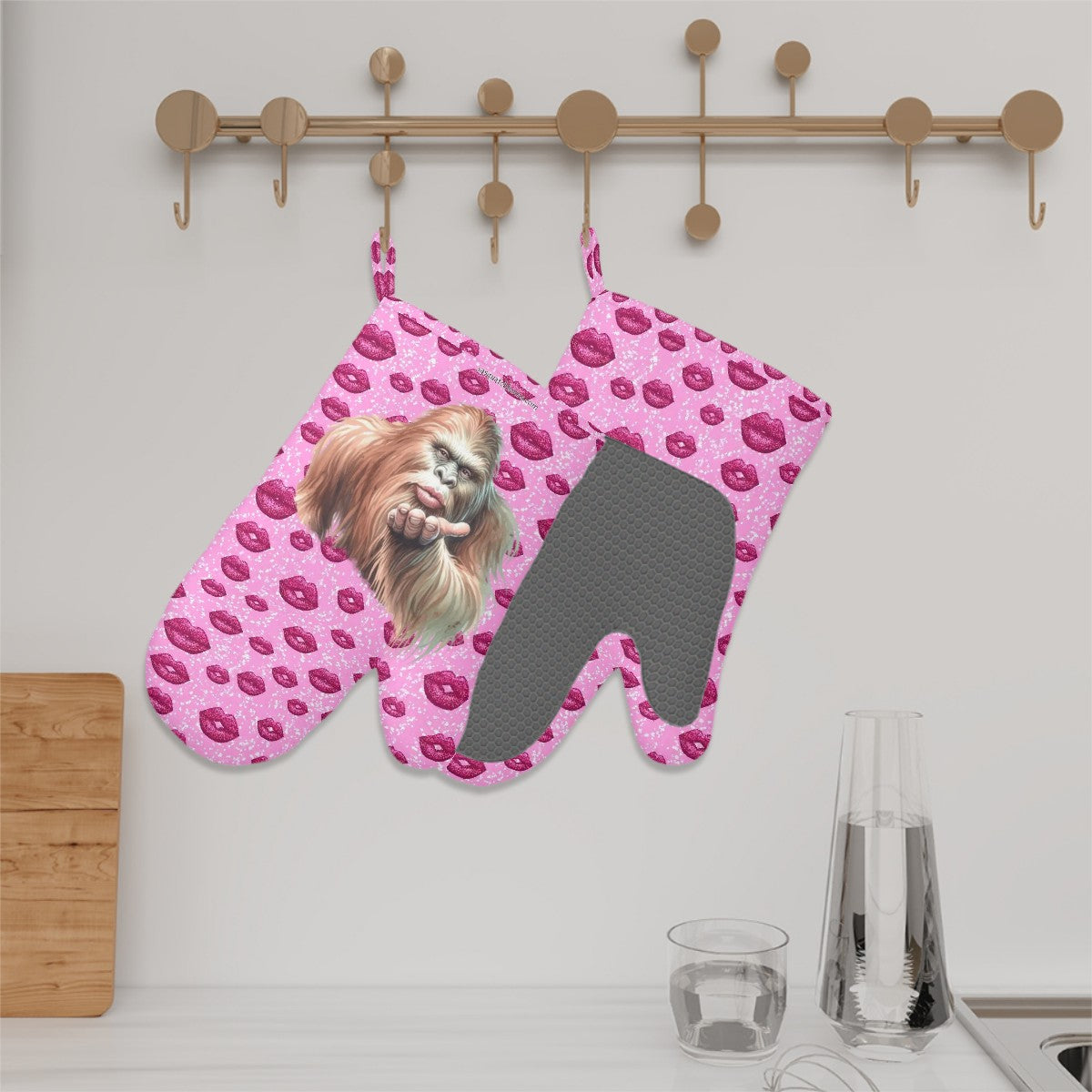 Set of 2 Silicone Heat Resistant Oven Mitts - Bigfoot, Sasquatch Blow Kiss