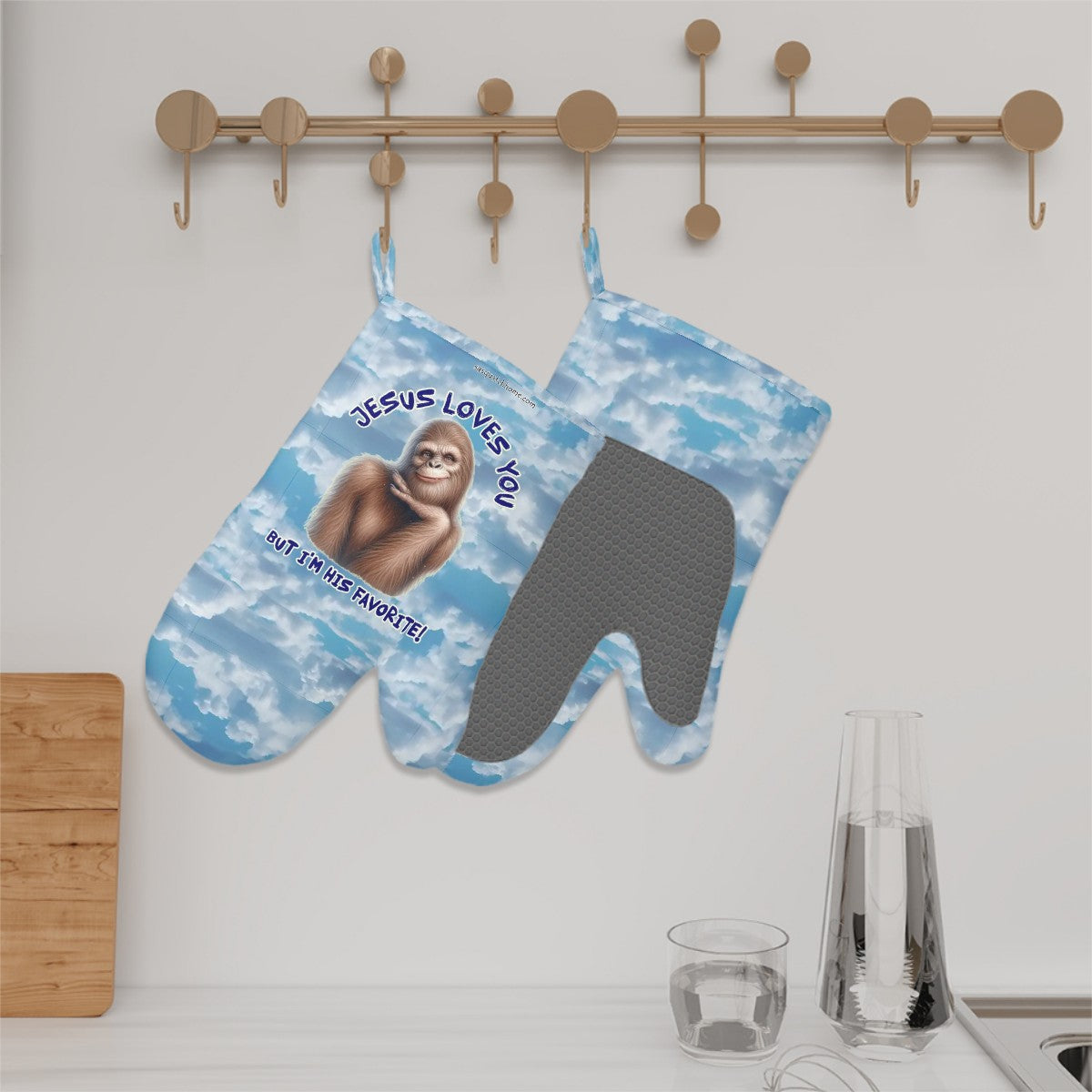 Set of 2 Silicone Heat Resistant Oven Mitts - "Jesus Loves You..."
