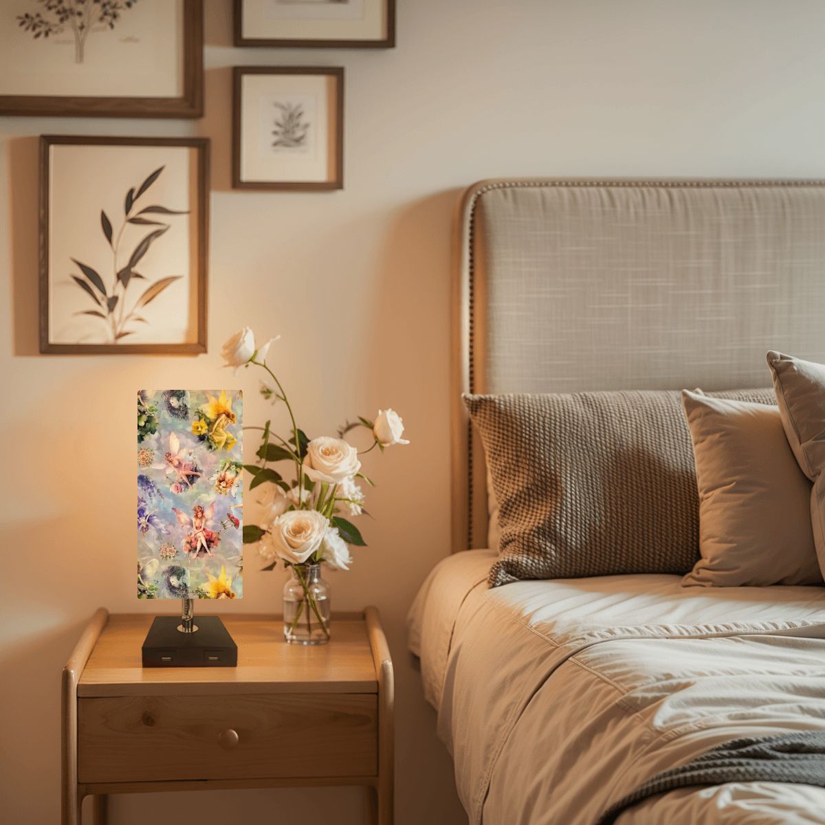 6 Fairy Designs, Square Table Lamp with USB Ports, Charger