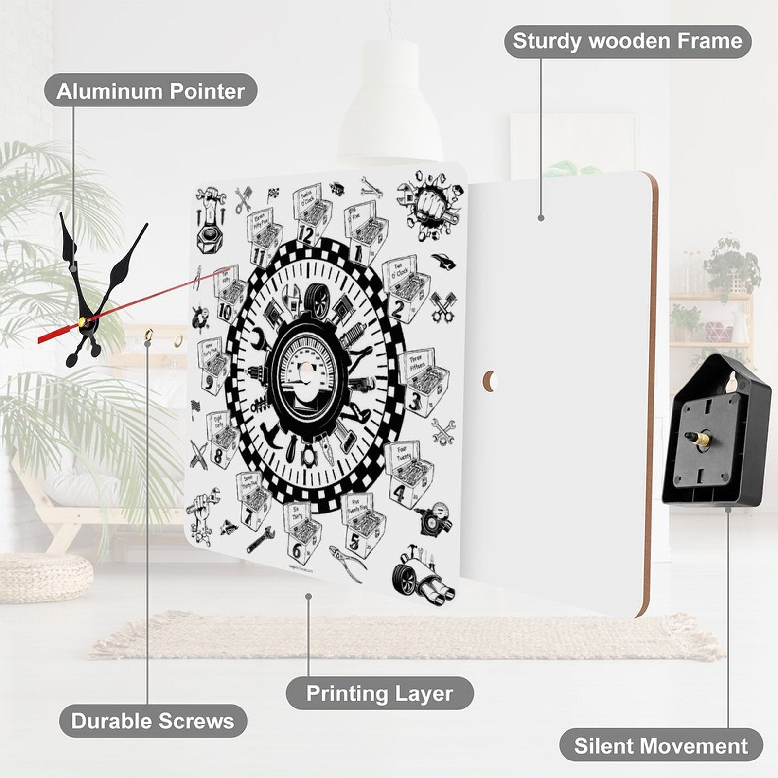Its classic square shape offers a timeless appeal, while the absence of scales provides an opportunity for personalized DIY customization, allowing you to tailor it to your taste and décor. Imagine transforming your wall with a unique, fashionable clock that reflects your personality!
