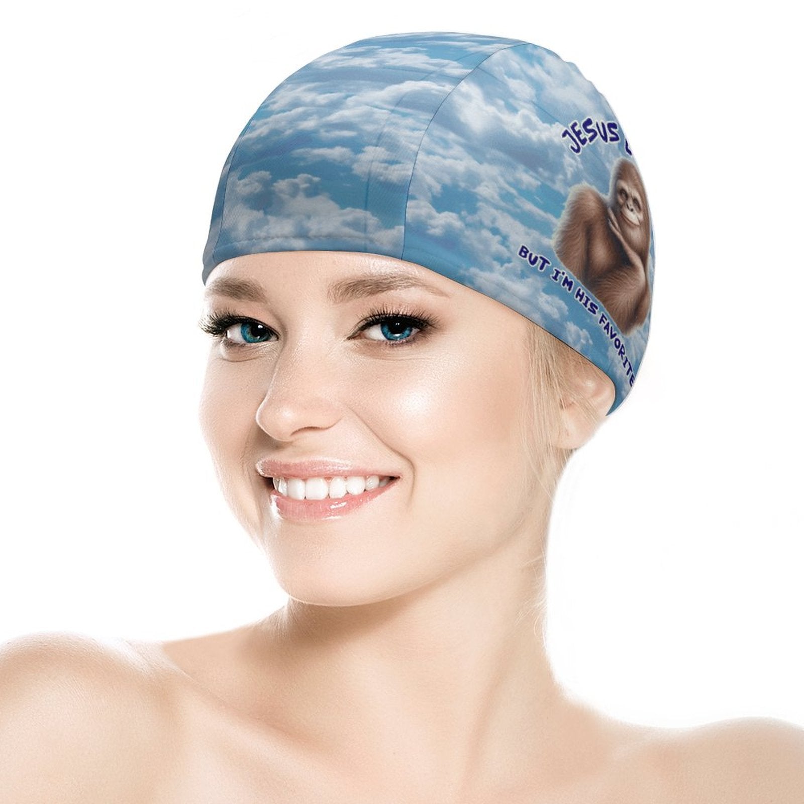 Bigfoot / Sasquatch, "Jesus Loves You....", Adult Swimming Cap