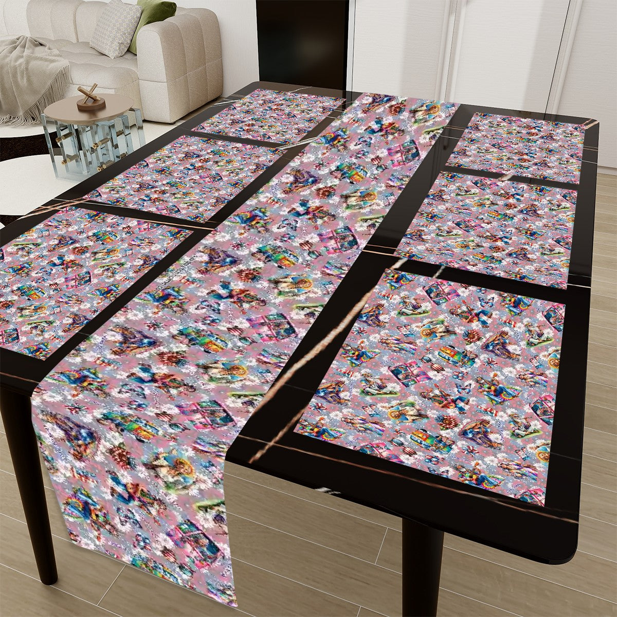 The modern 3D custom designs are sure to pair perfectly with any table setting, ensuring a cohesive look. Invest in this linen table run and placemat set for a blend of elegance and practicality.
