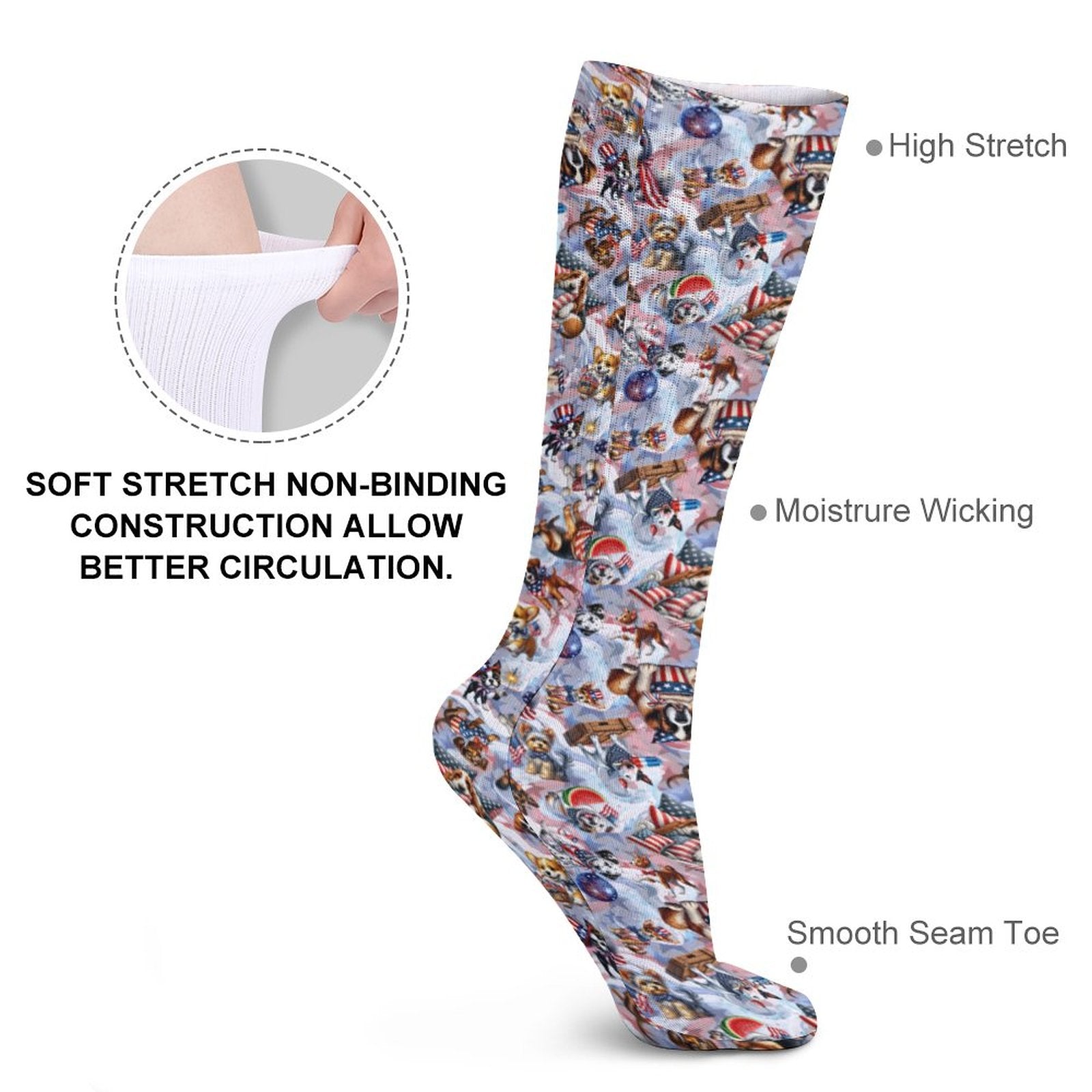 8 Patriotic Designs, 15.5 Inch Tube Socks