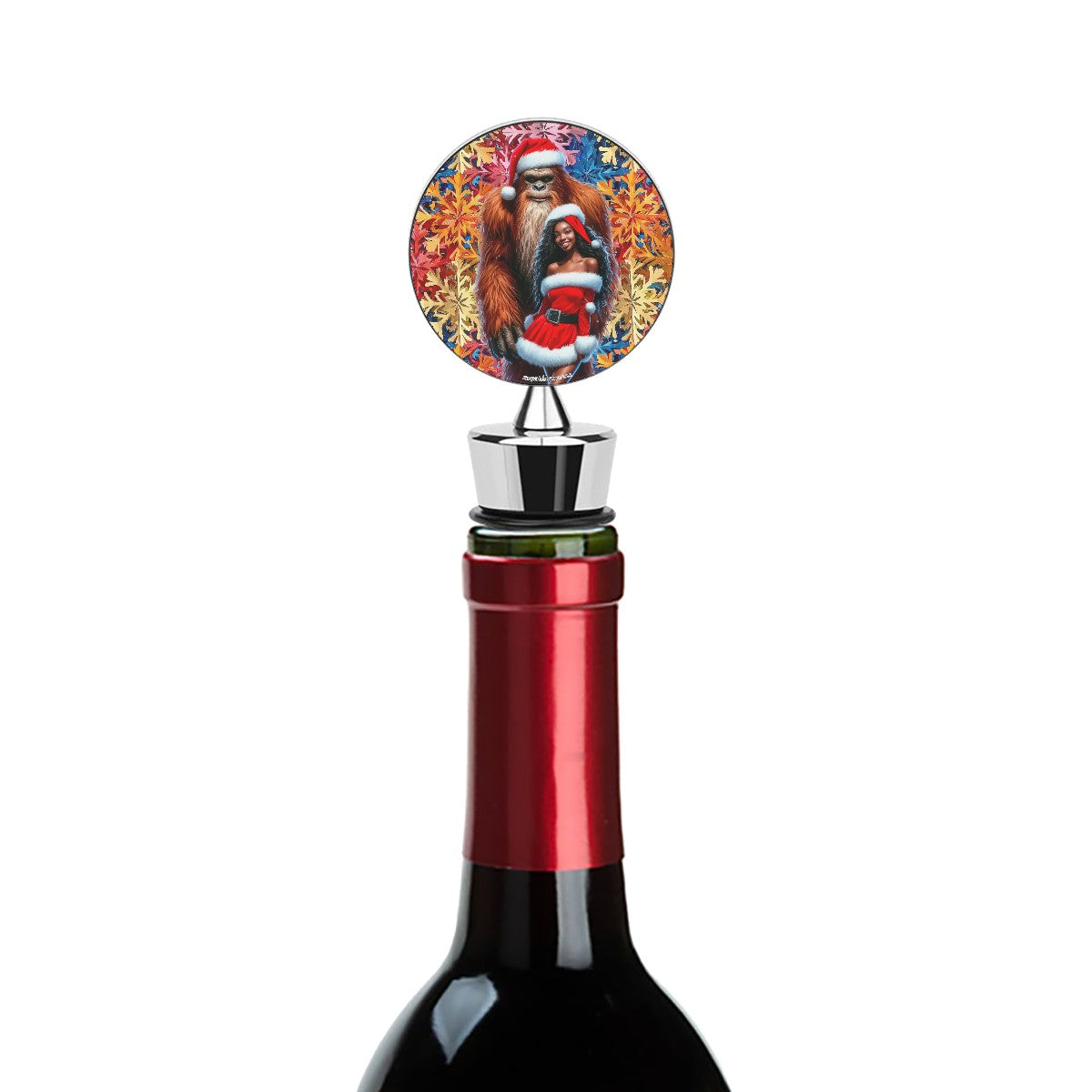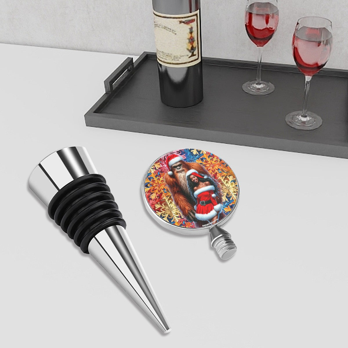 Christmas Sasquatch with Gal 1, Wine Bottle Stopper