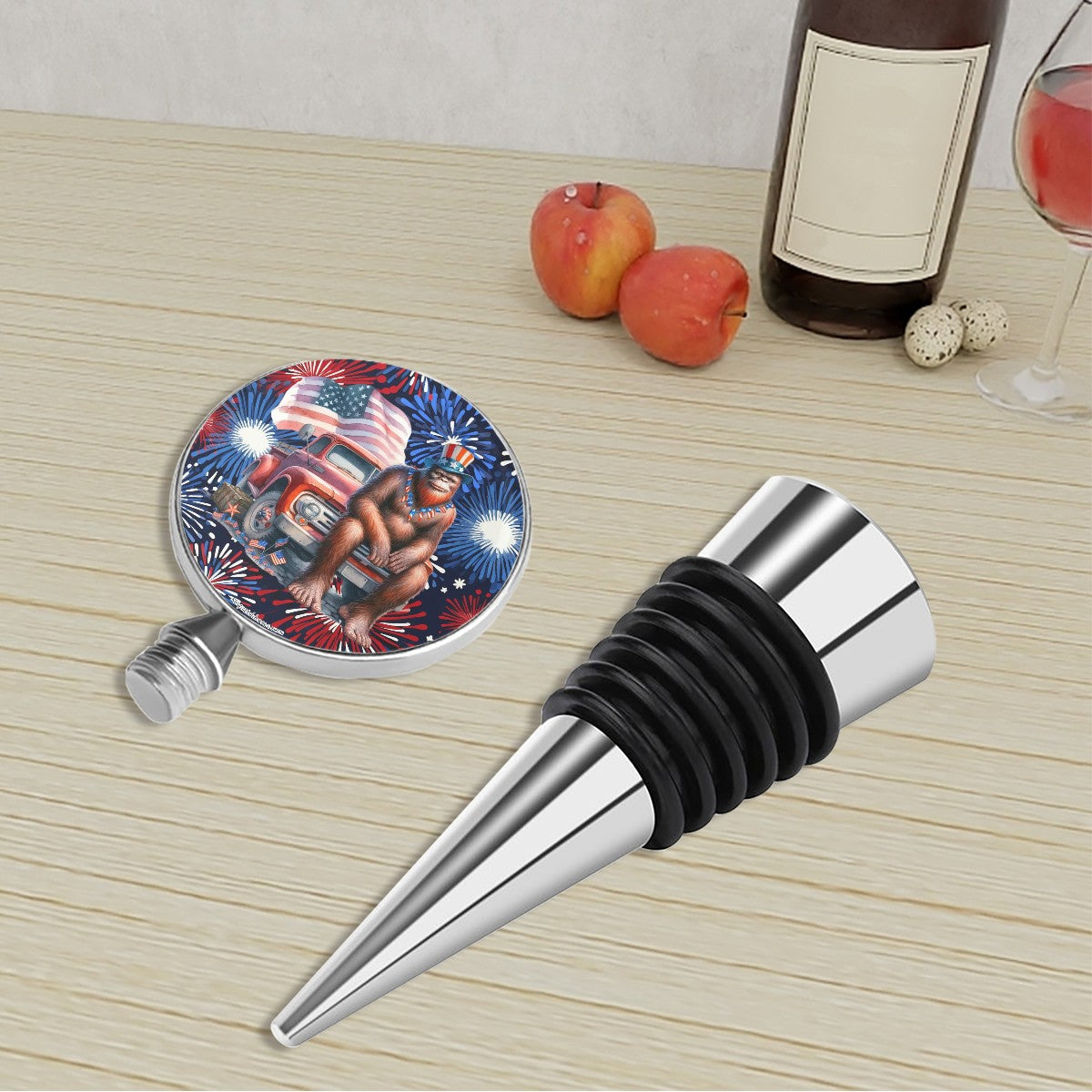 Patriot Bigfoot / Sasquatch on Truck, Wine Bottle Stopper